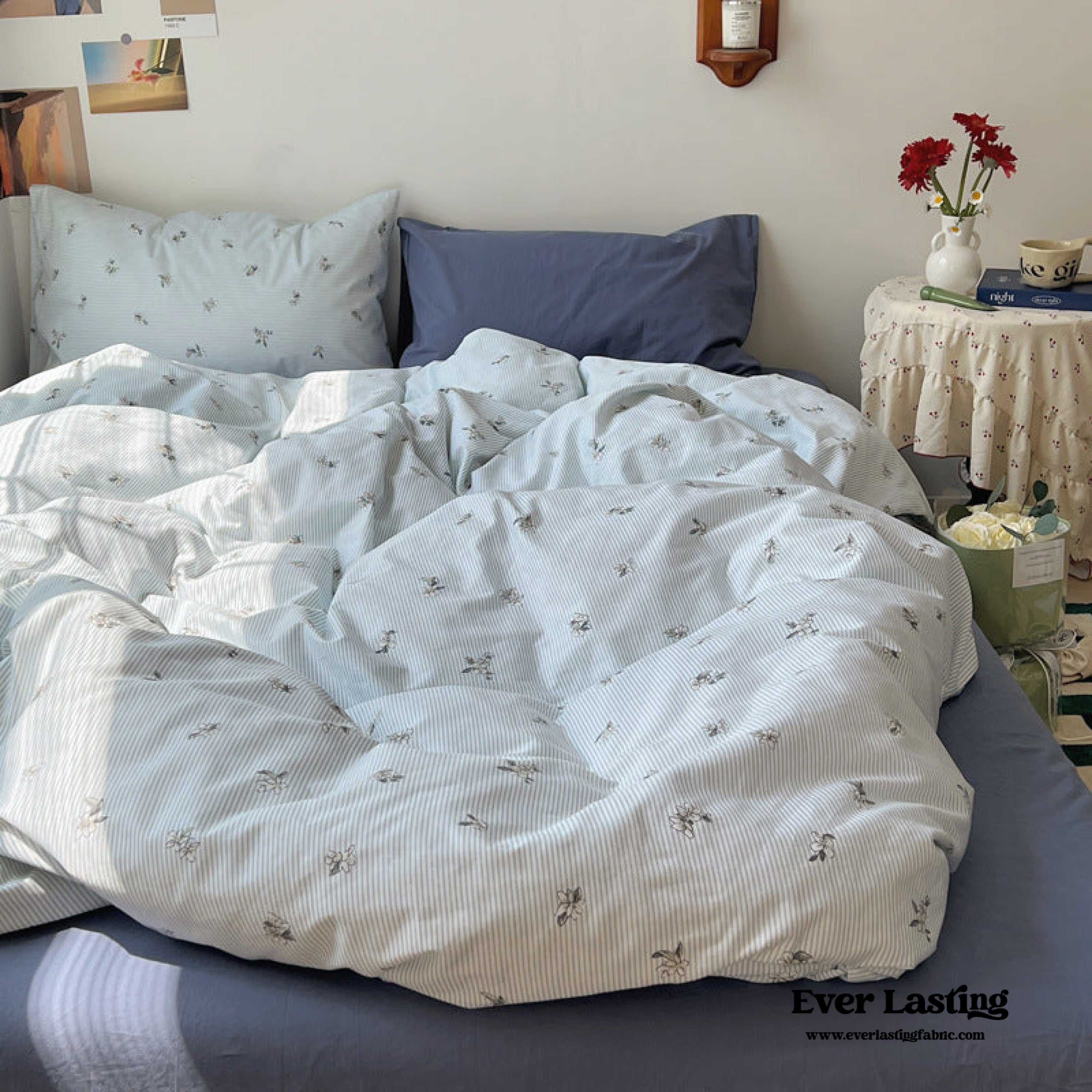 Thin Stripe Floral Bedding now comes in a bundle. Enjoy and save a full set of bedding with duvet insert and pillows along with our classic duvet cover. bed sheet and pillowcase.
