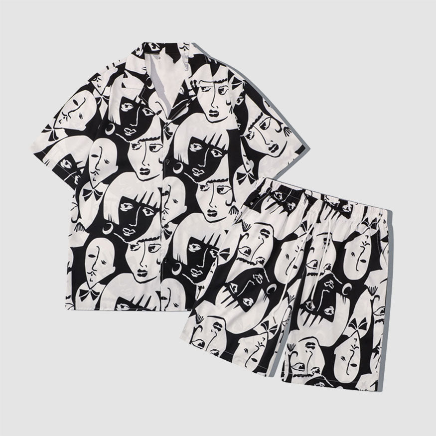 Camisa y pantalones cortos de dos piezas con pintura de figura abstracta