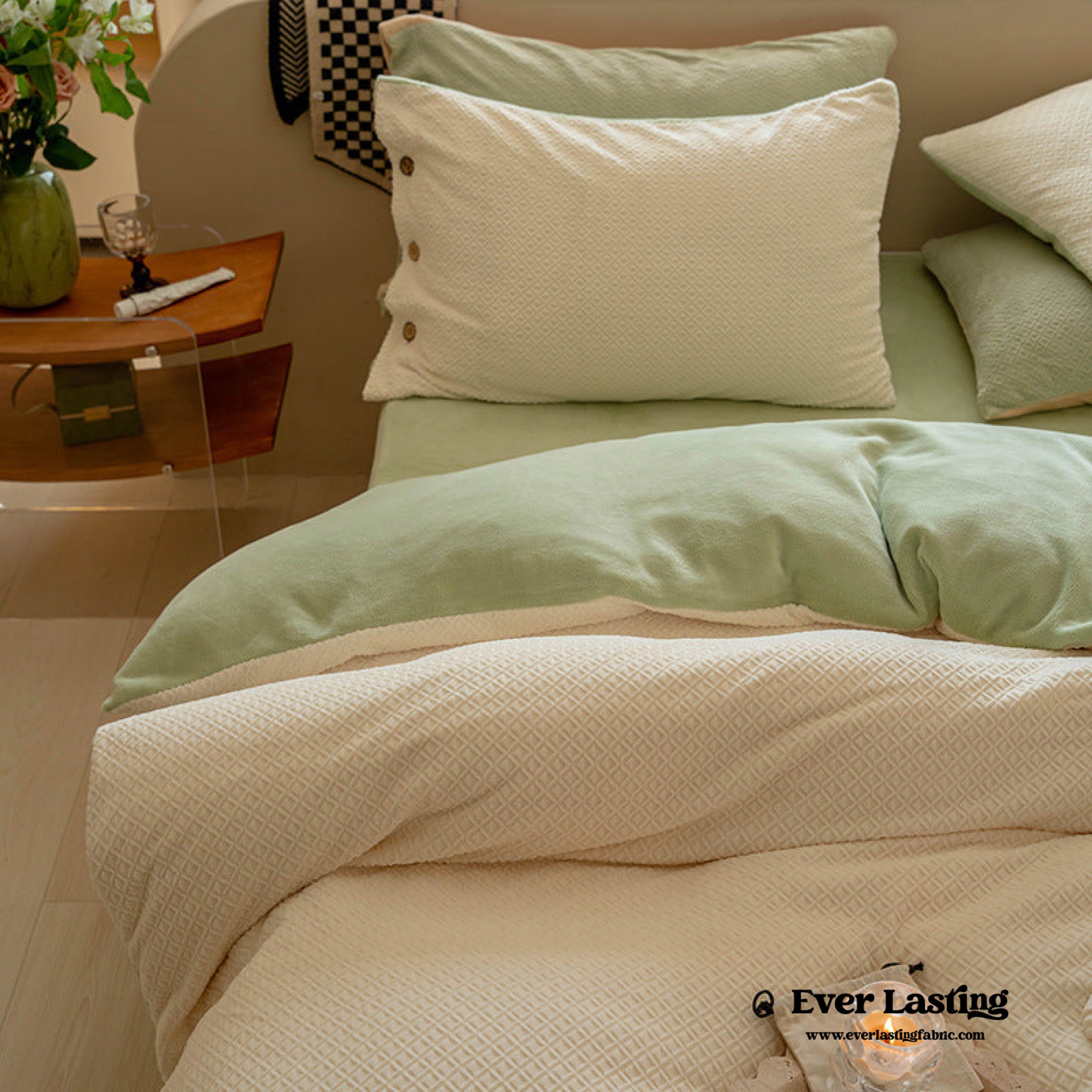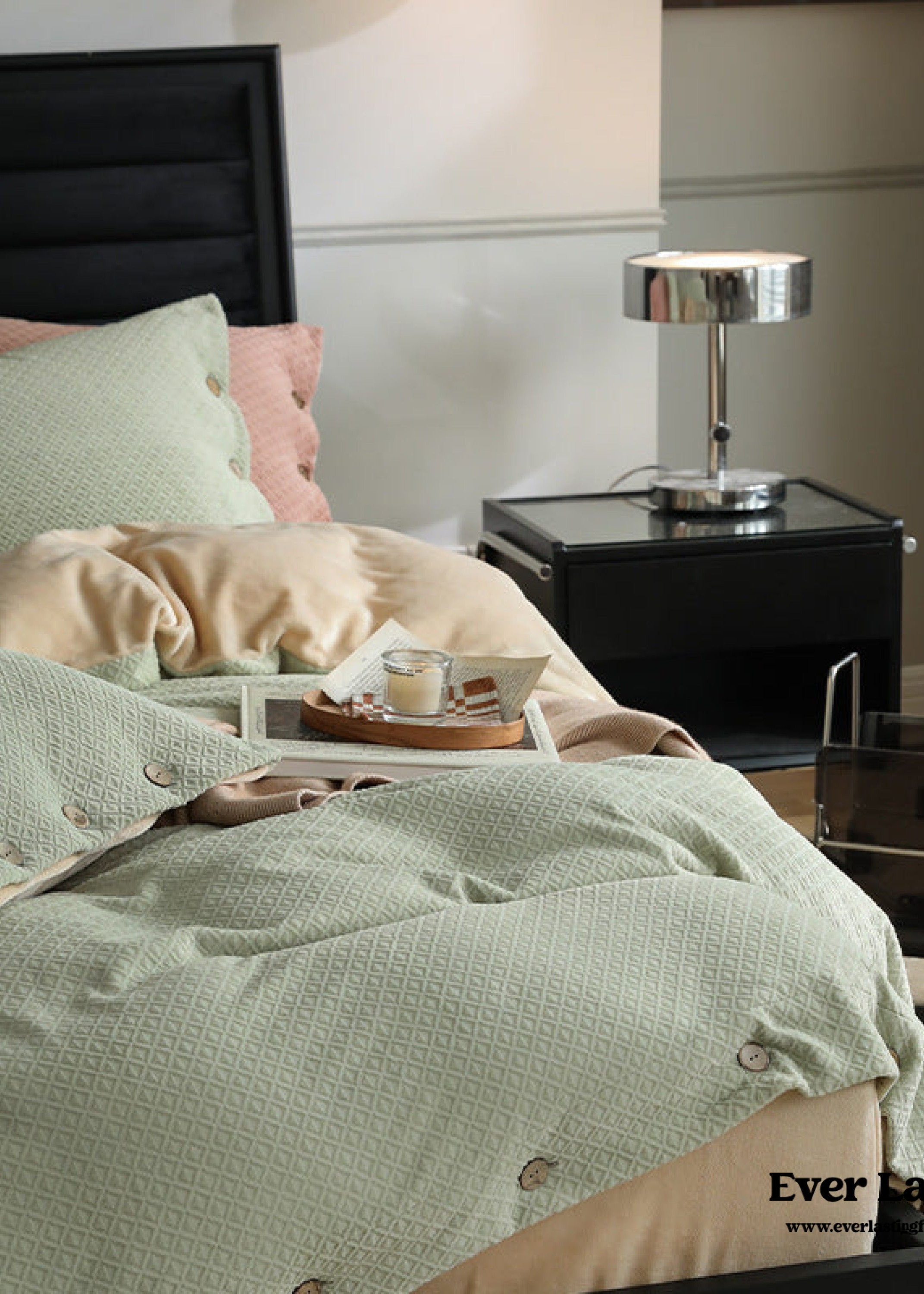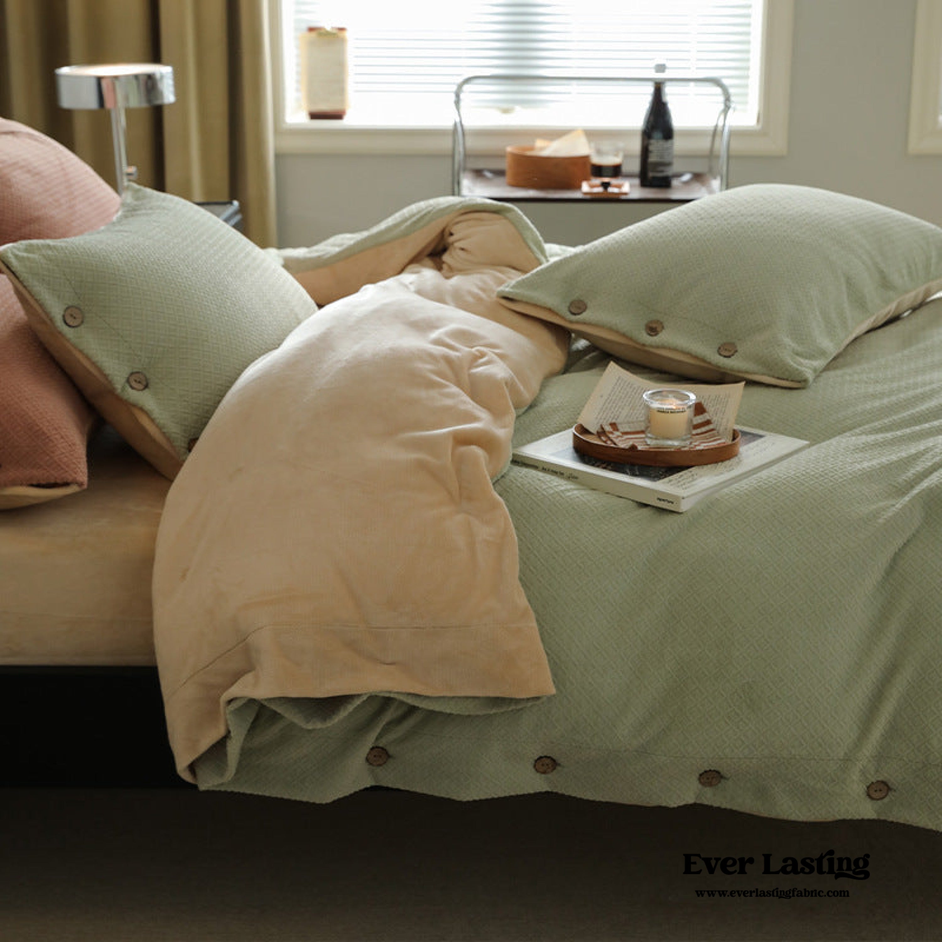 Indulge in the opulent embrace of our Velvet Buttoned Bedding Set. Crafted with sumptuous velvet and adorned with elegant button detailing. this set exudes an air of timeless luxury. Each duvet cover features four corner ties and a hidden zipper. ensuring your duvet insert stays securely in place all night. Elevate your sleep experience with a touch of regal comfort and style. transforming your bedroom into a haven where each night feels like a stay in a lavish palace. Immerse yourself in the softness of velvet and make your dreams the epitome of comfort and sophistication.