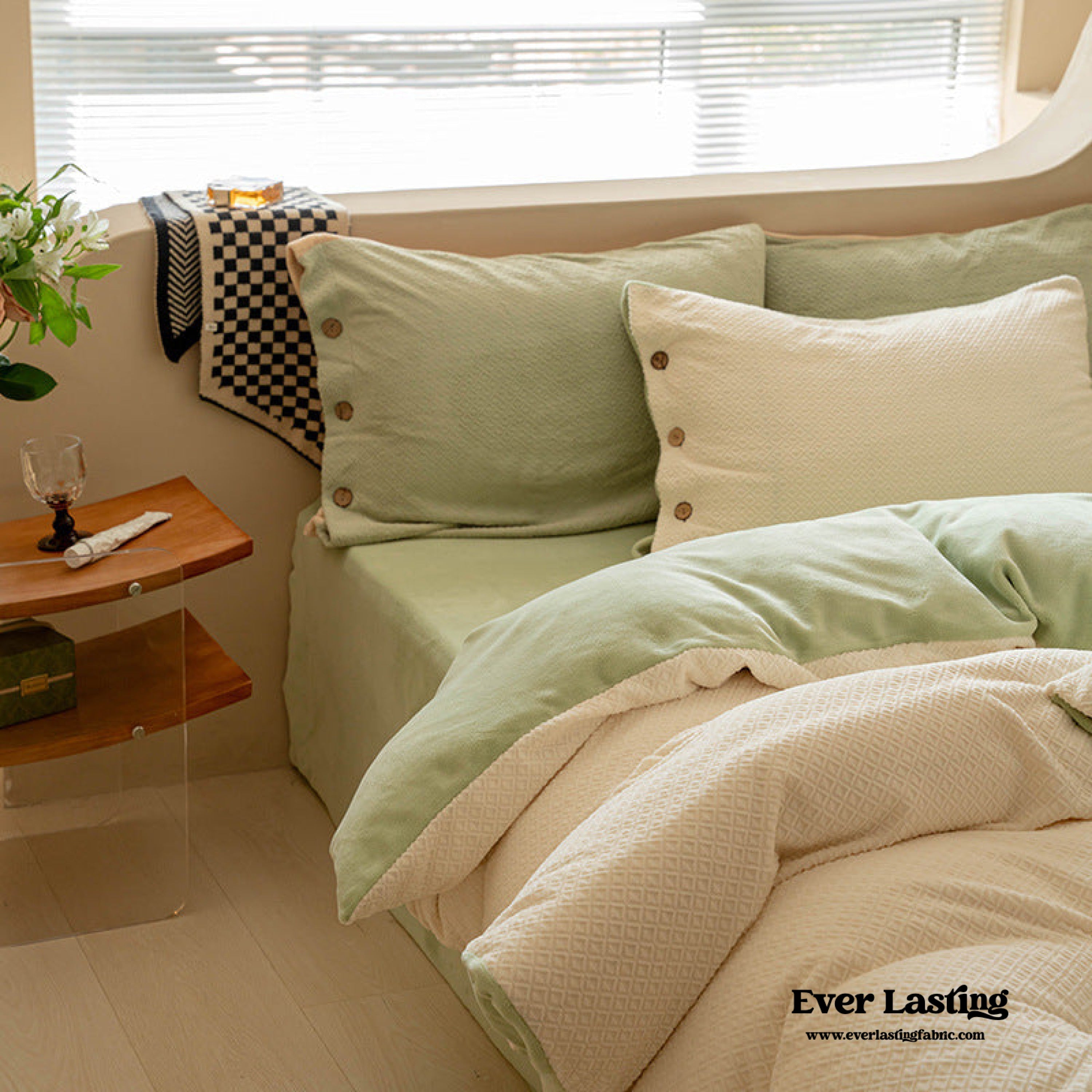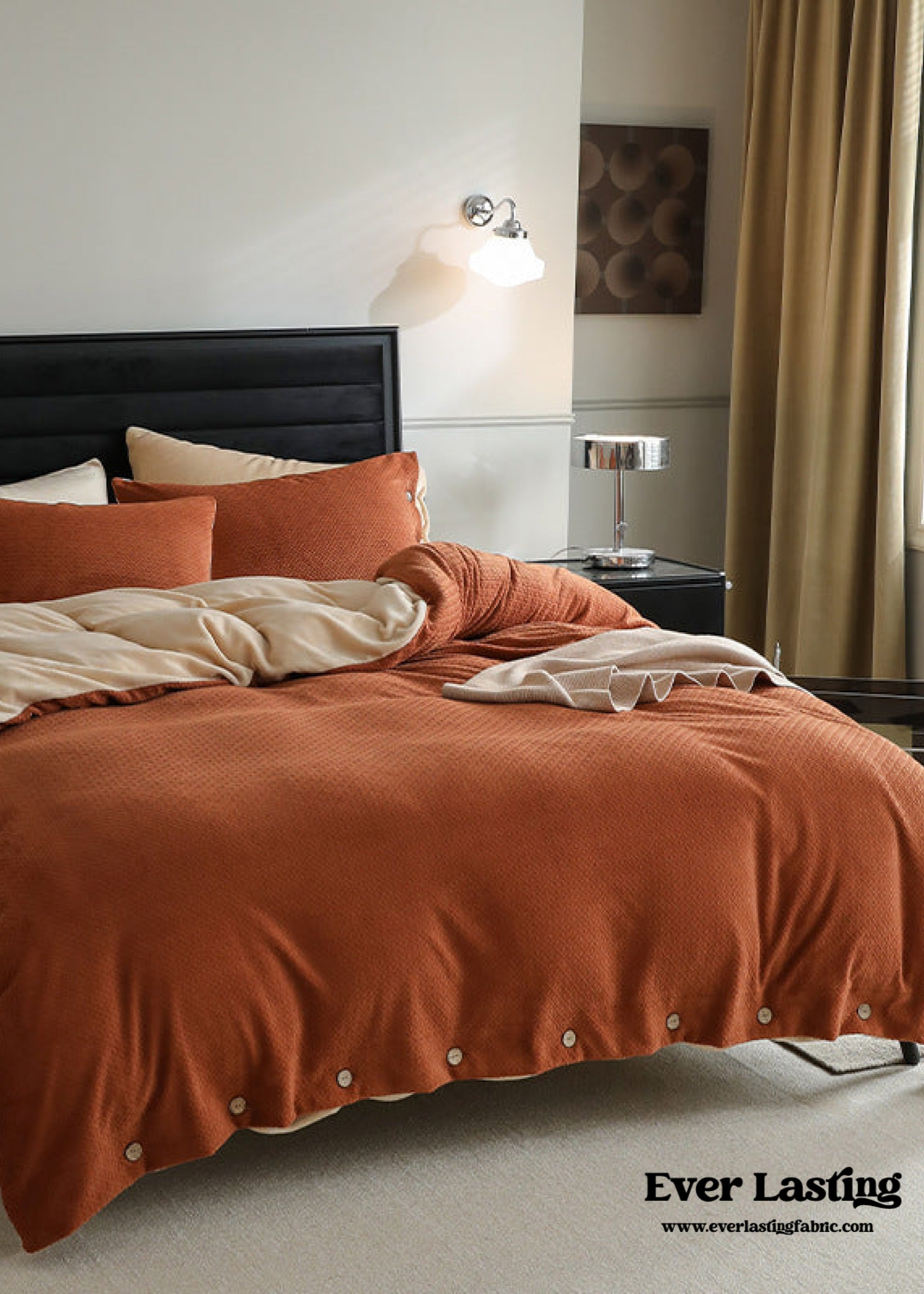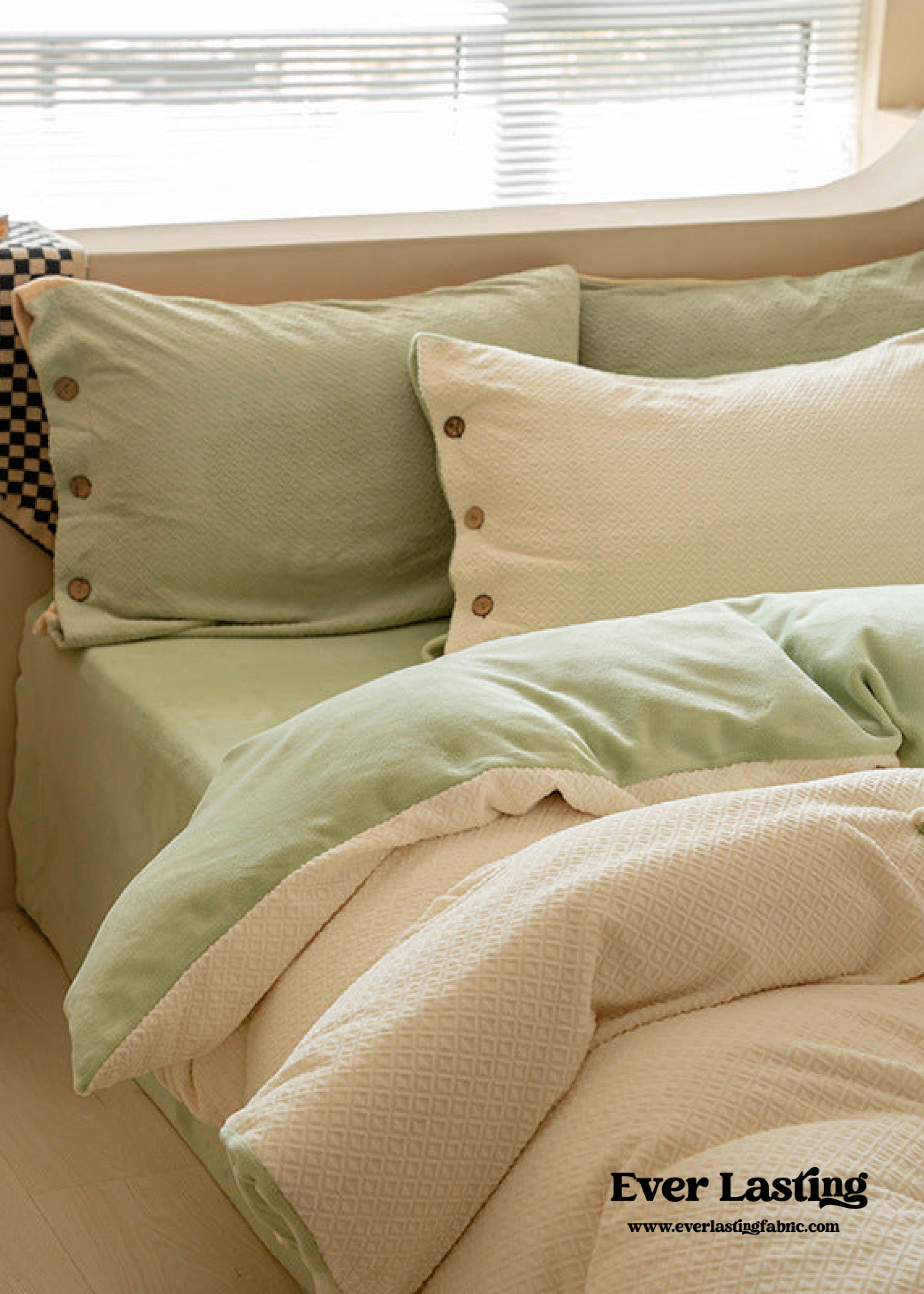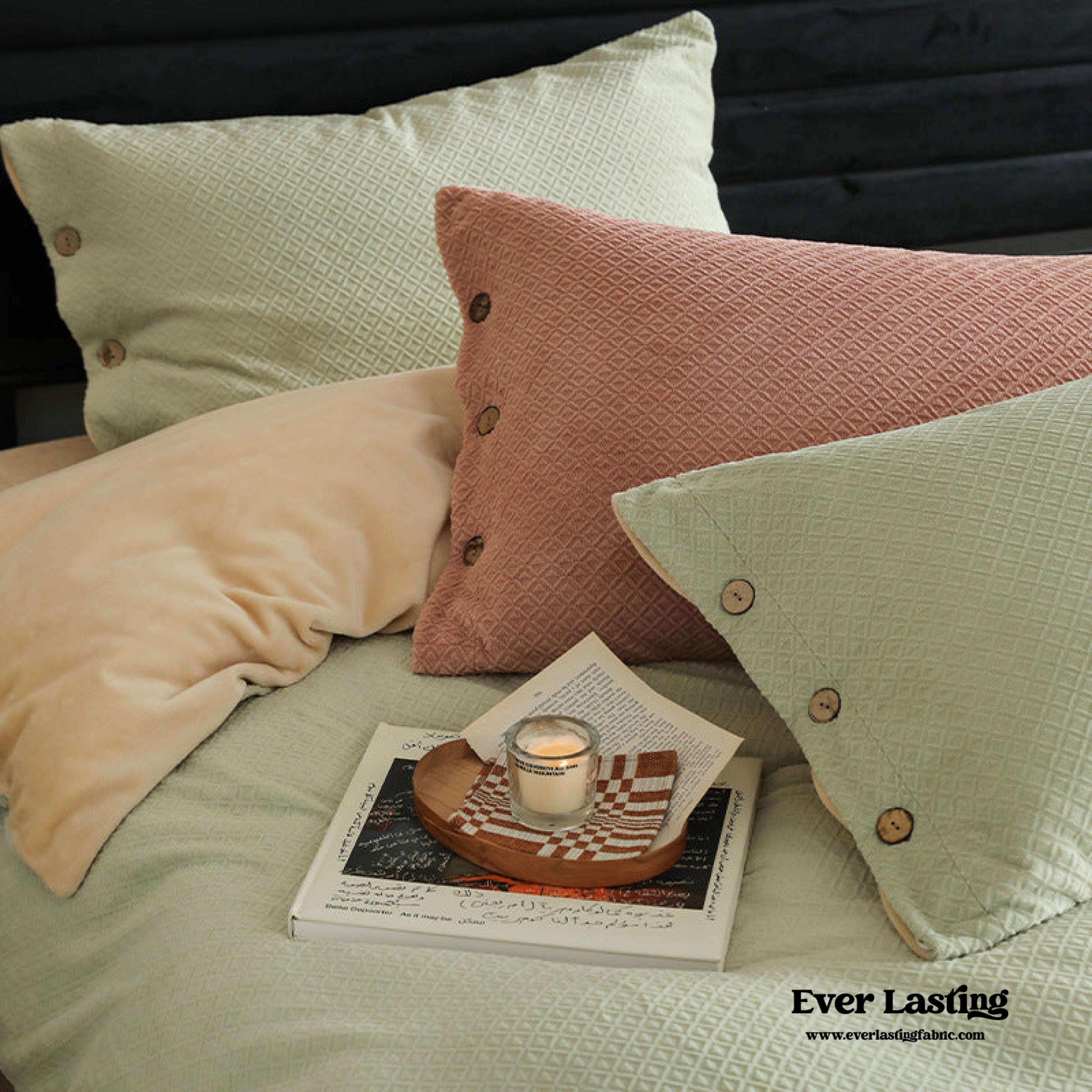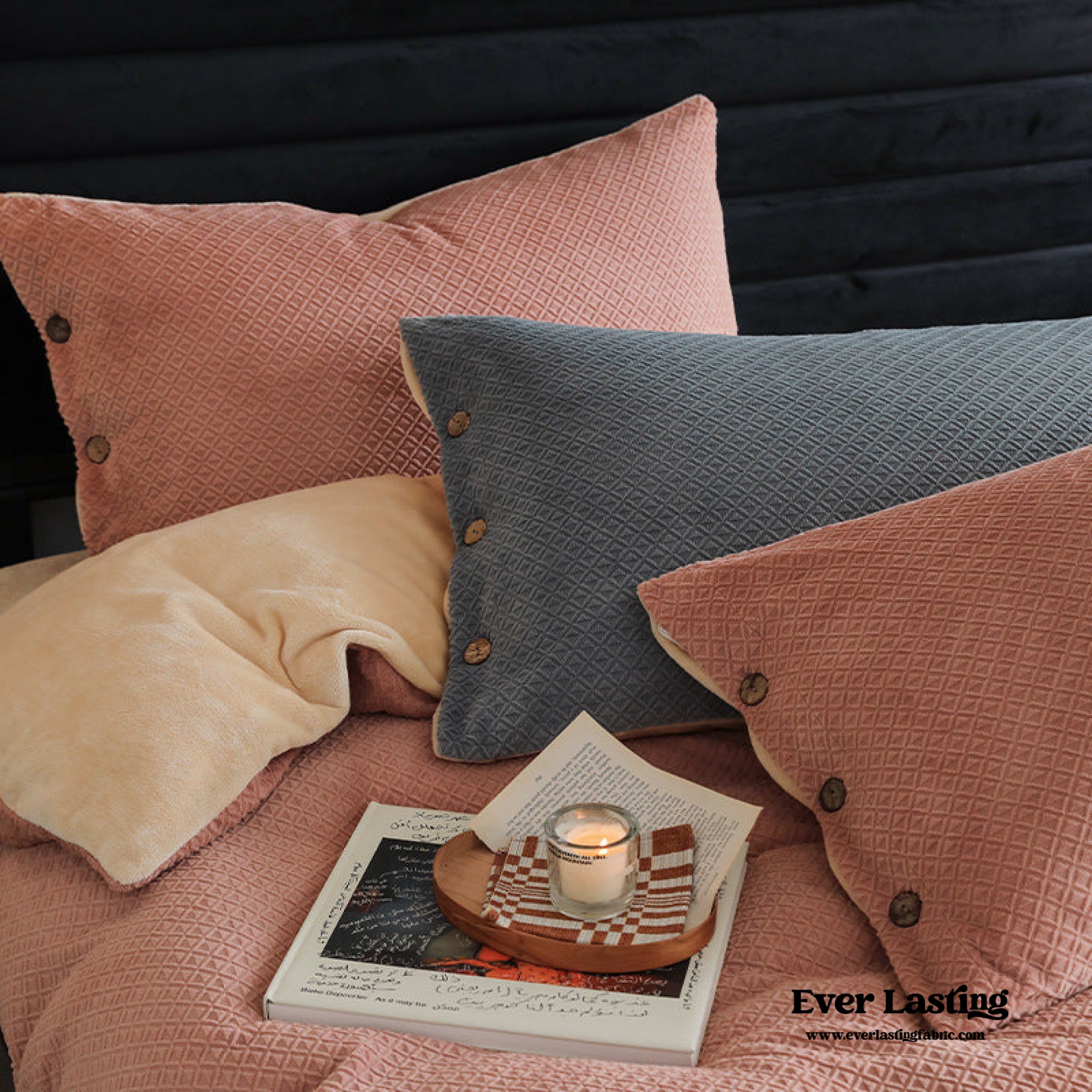 Indulge in the opulent embrace of our Velvet Buttoned Bedding Set. Crafted with sumptuous velvet and adorned with elegant button detailing. this set exudes an air of timeless luxury. Each duvet cover features four corner ties and a hidden zipper. ensuring your duvet insert stays securely in place all night. Elevate your sleep experience with a touch of regal comfort and style. transforming your bedroom into a haven where each night feels like a stay in a lavish palace. Immerse yourself in the softness of velvet and make your dreams the epitome of comfort and sophistication.