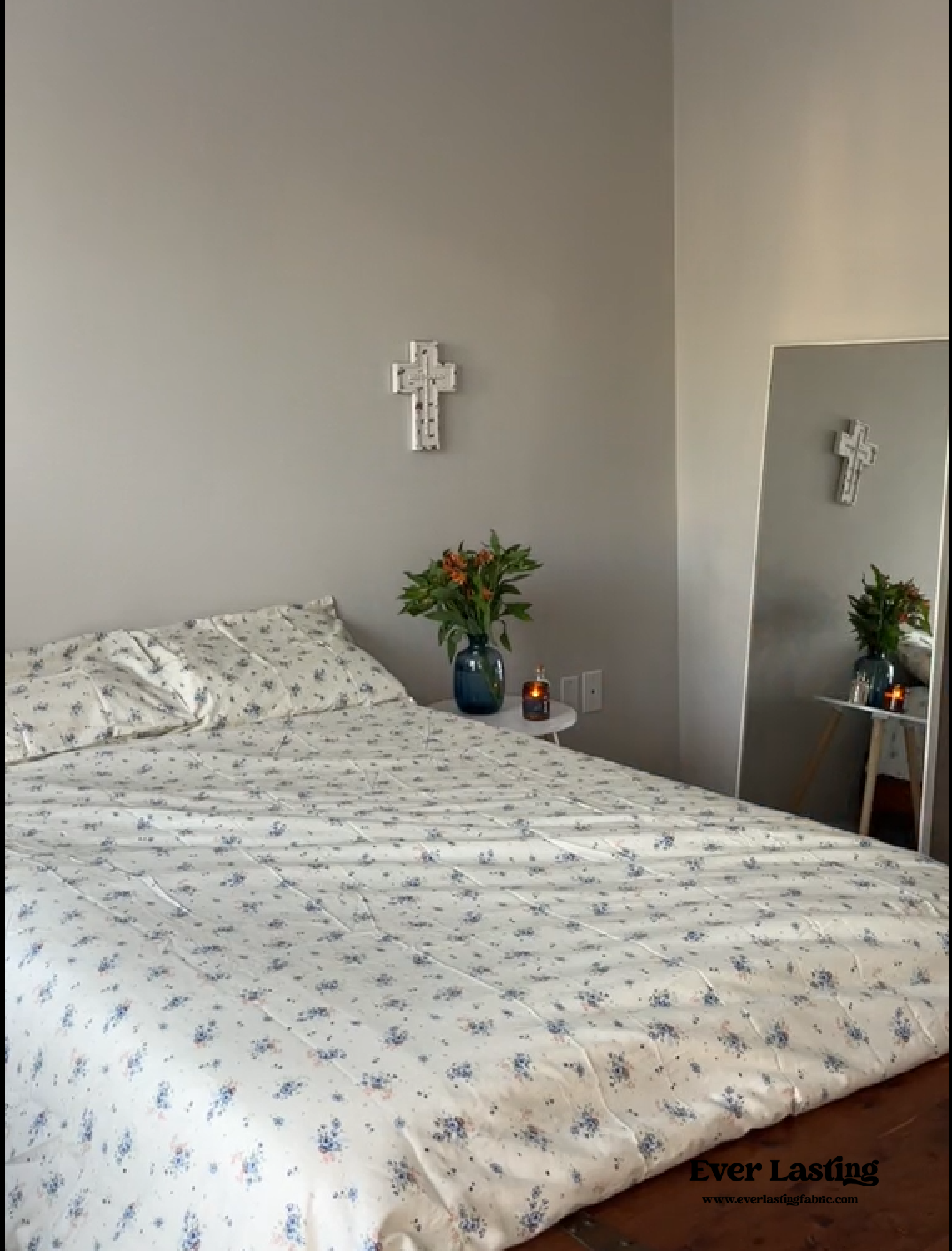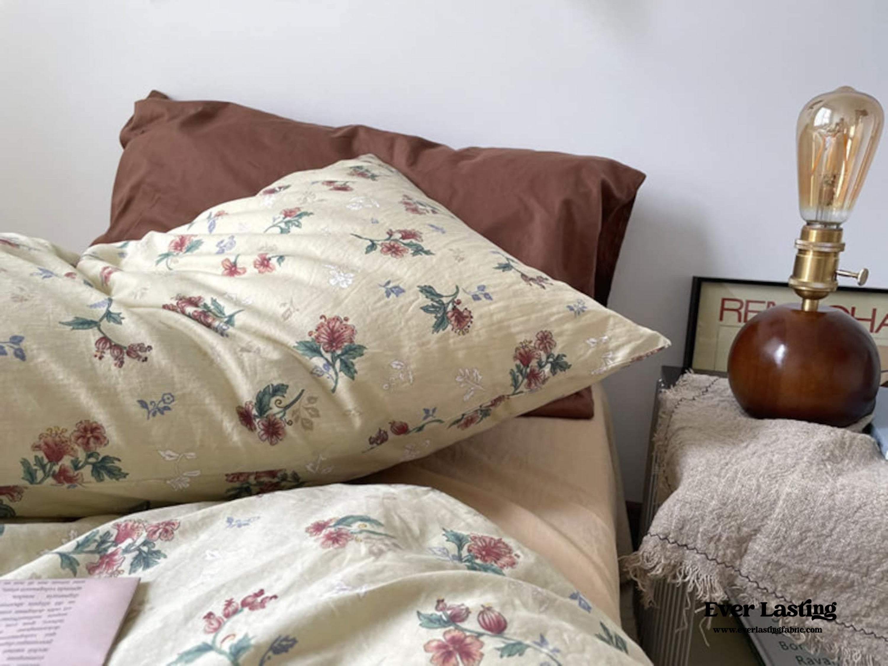 Inspired by vintage patterns and colors. our new floral bedding sets aremade with 100% washed cotton fabric that is breathable and long lasting. Each duvet cover comes with corner ties and high quality invisible zipper.