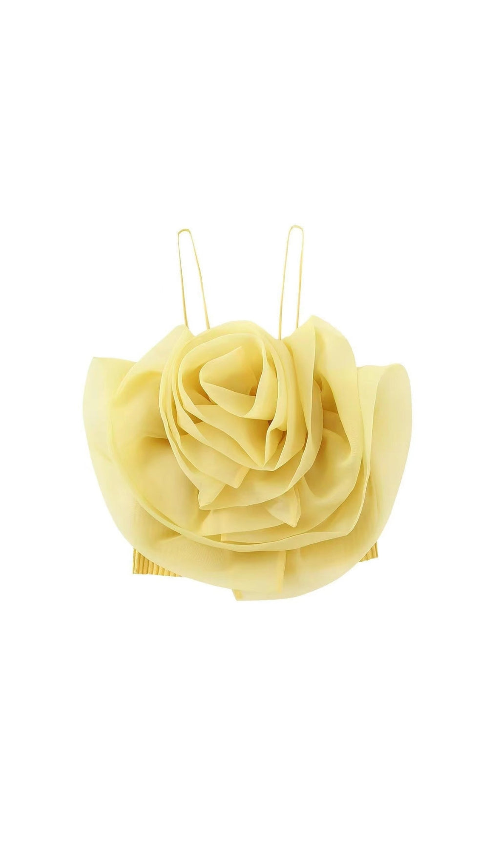 Top con escote recto y tirantes finos. Tela de organza a juego con forma de flor grande.