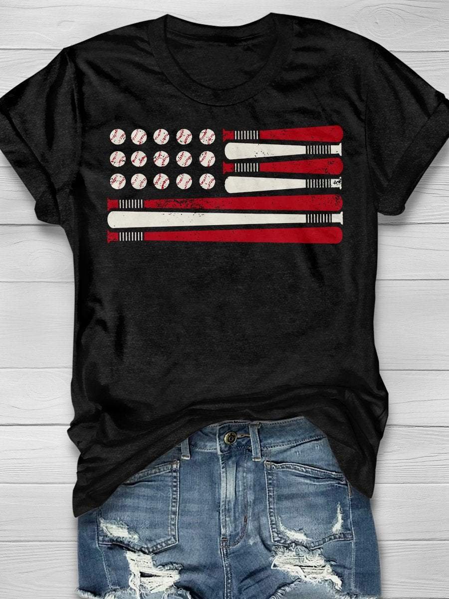 American Flag Patriotic Baseball Design Print Short Sleeve T-shirt