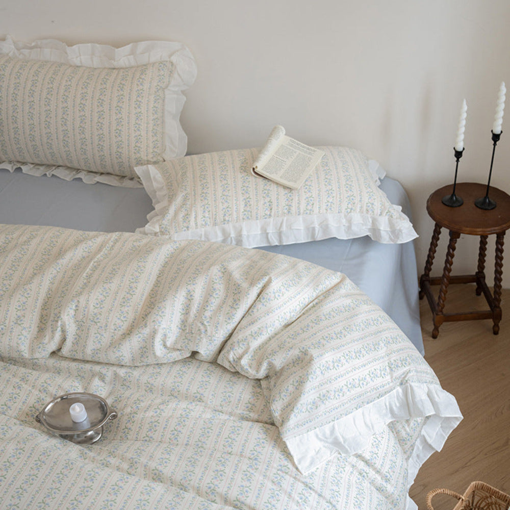 Annie Lace Ruffle Floral Bedding Set - Blue