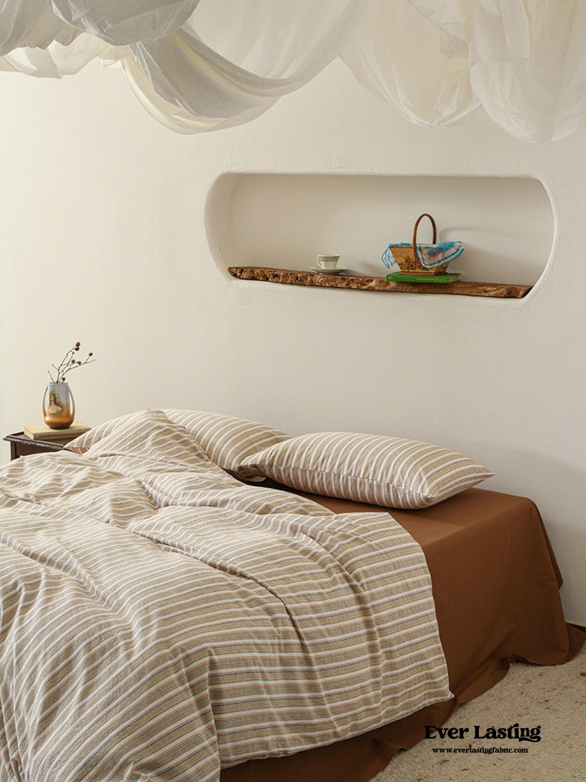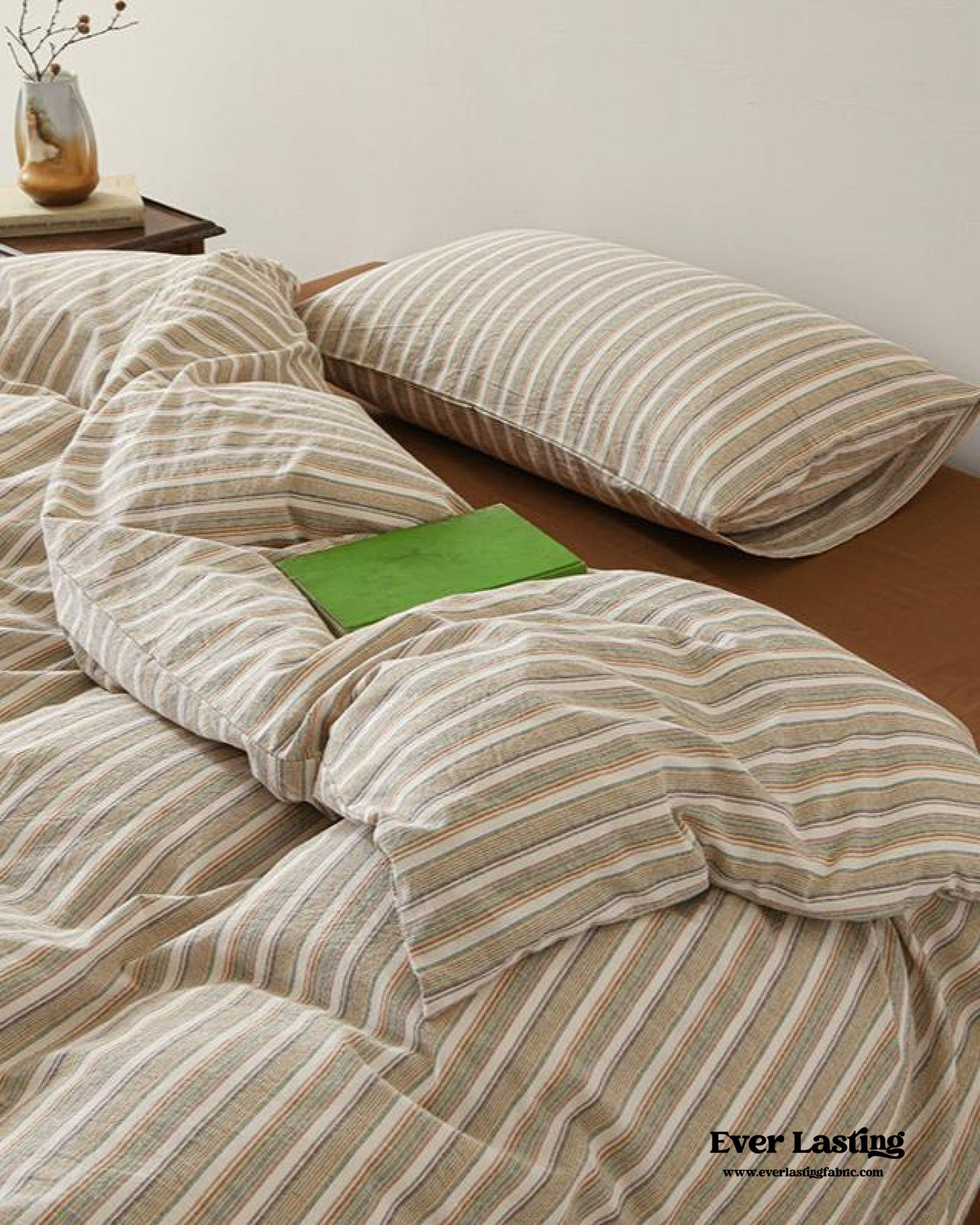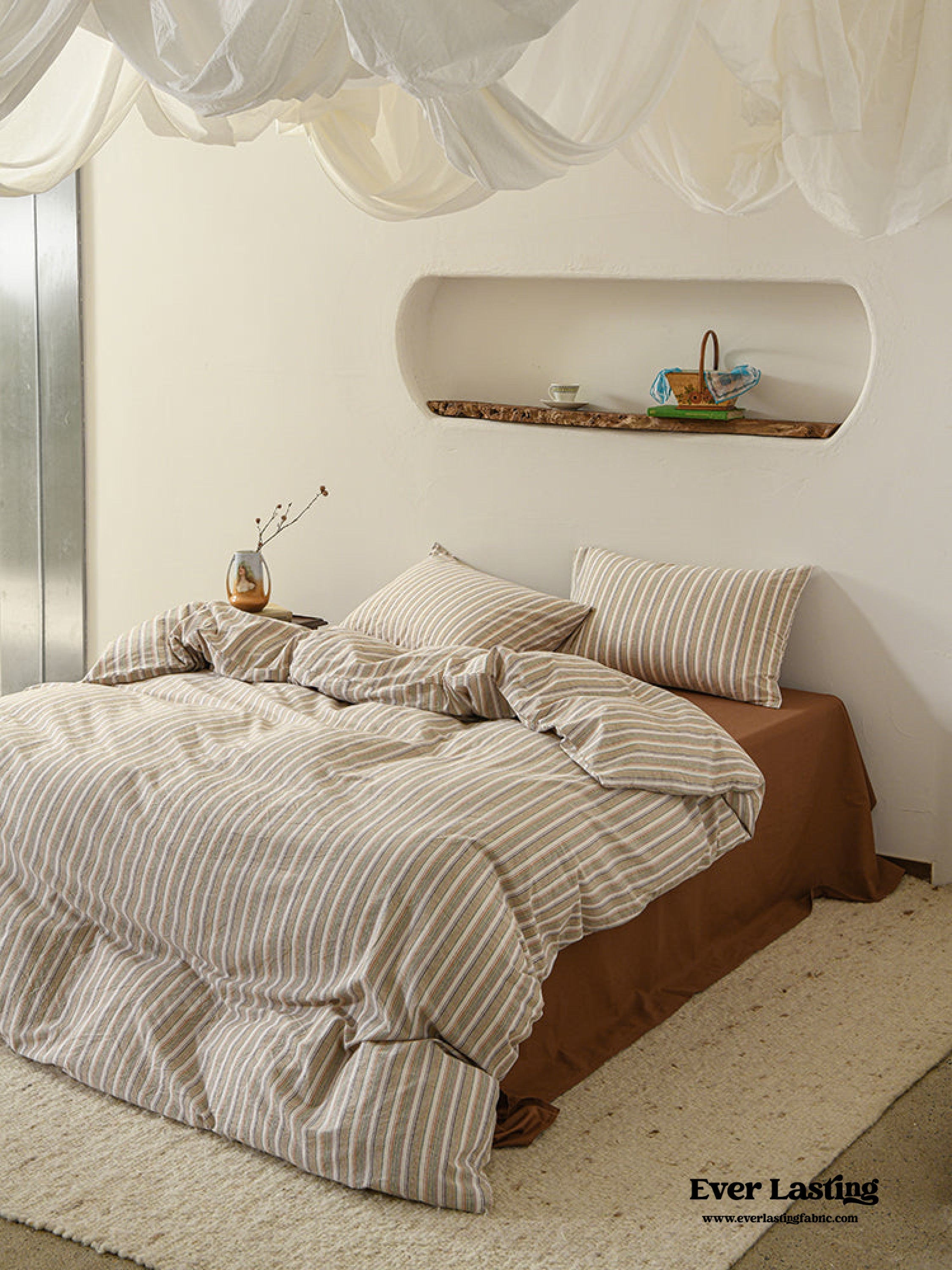 Transform your bedroom into a peaceful sanctuary with the Clara Vintage Minimalist Striped Bedding Set by Magchic. Crafted from breathable. 100% washed cotton. this set offers exceptional softness and lasting durability. ensuring a restful and refreshing sleep experience. Featuring a subtle striped design in neutral tones. it effortlessly complements any decor with its understated elegance. Thoughtfully designed for convenience. the duvet cover includes corner ties and a hidden zipper for a secure fit. while the pillowcases boast envelope closures for a neat and refined look. Experience the perfect harmony of comfort and timeless style with this versatile bedding set.