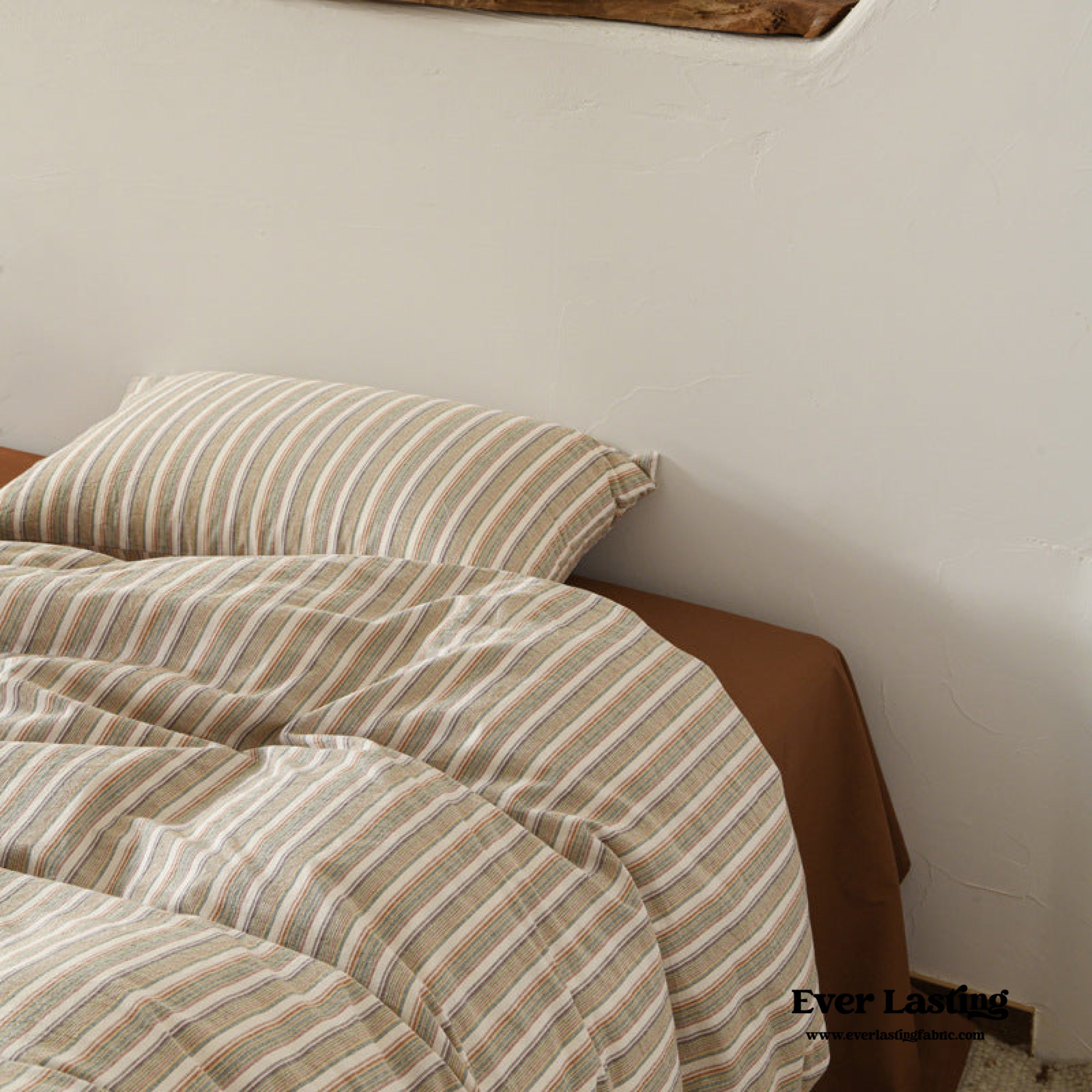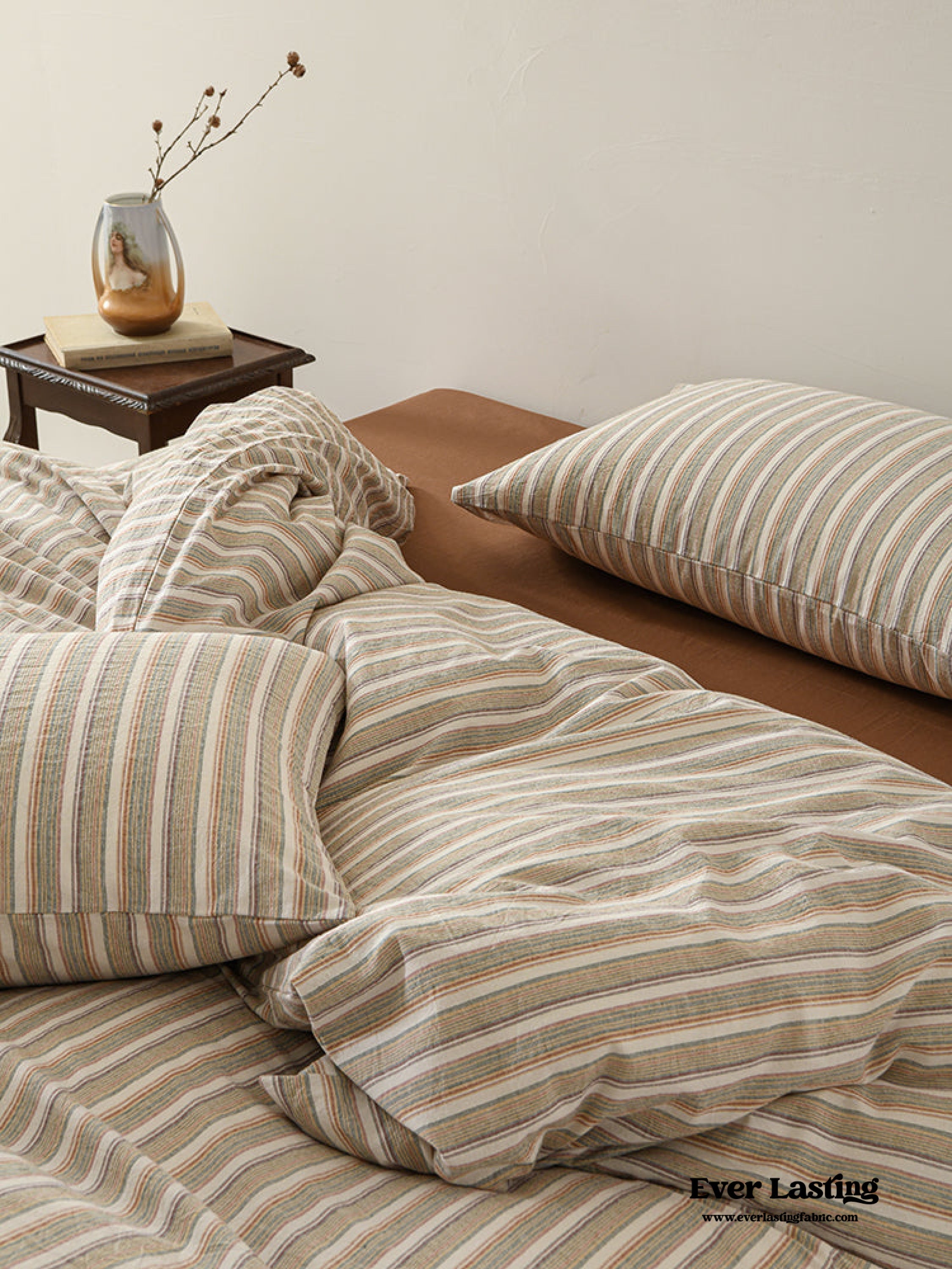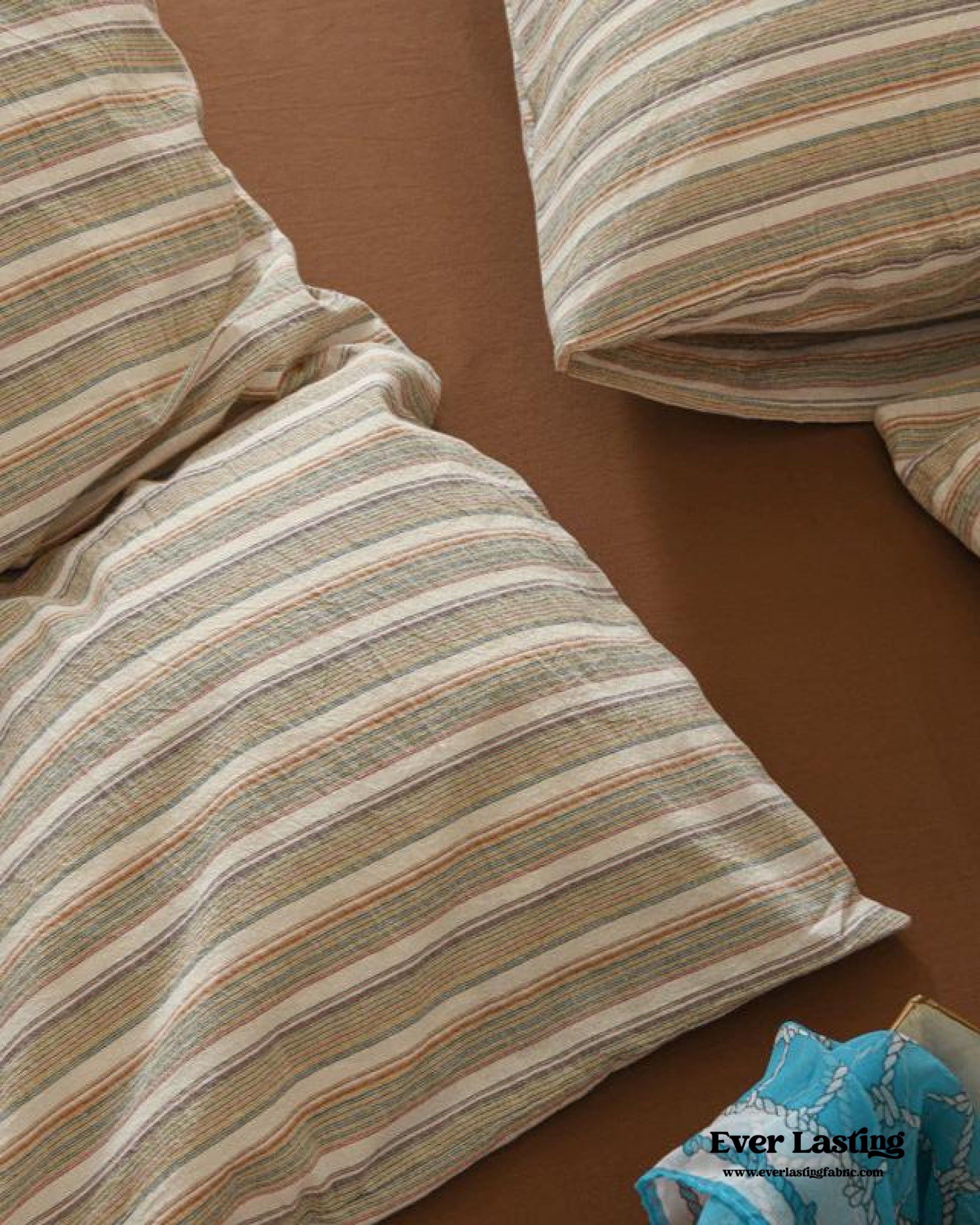 Transform your bedroom into a peaceful sanctuary with the Clara Vintage Minimalist Striped Bedding Set by Magchic. Crafted from breathable. 100% washed cotton. this set offers exceptional softness and lasting durability. ensuring a restful and refreshing sleep experience. Featuring a subtle striped design in neutral tones. it effortlessly complements any decor with its understated elegance. Thoughtfully designed for convenience. the duvet cover includes corner ties and a hidden zipper for a secure fit. while the pillowcases boast envelope closures for a neat and refined look. Experience the perfect harmony of comfort and timeless style with this versatile bedding set.