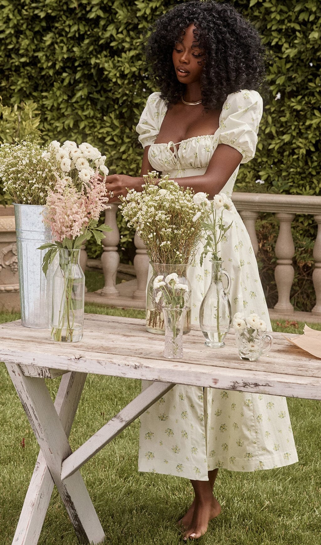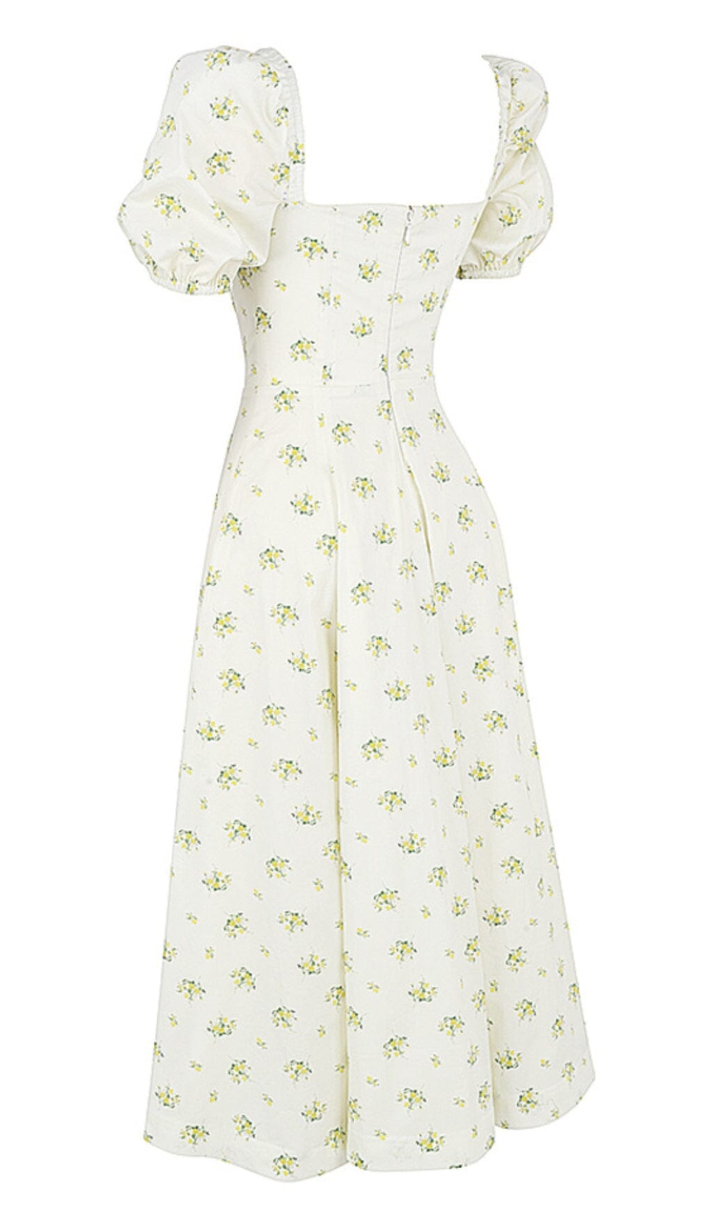 Vintage Floral Puff Sleeve Midi Dress in White