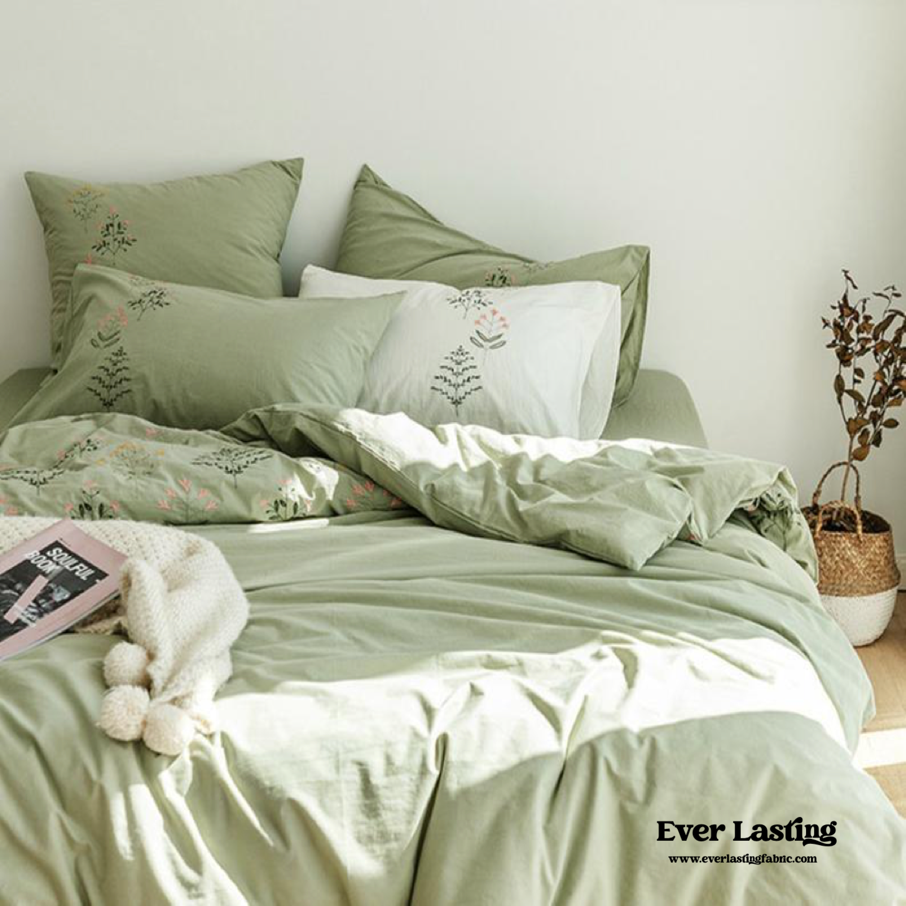 Natural reflected on the everyday. This set is classic bedding set with delicate hand sew embroidery. Enjoy this high-quality set made with 100% cotton which is breathable. soft. and long-lasting.