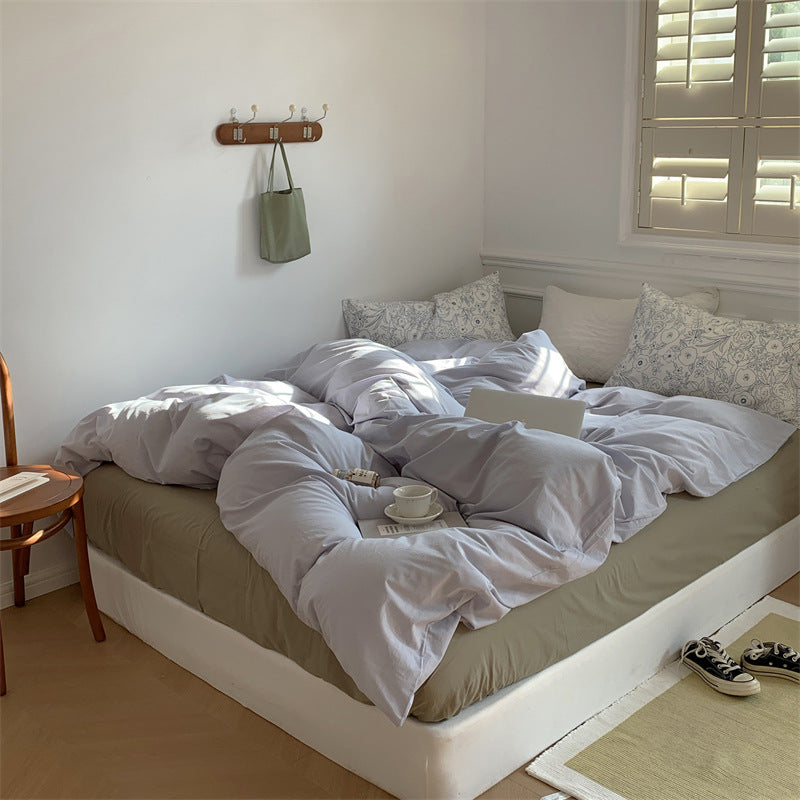 Minimal bedding set styled with the ultimate neutral color palette and delicate floral pillowcases. Made with 100% wash cotton fabric that is breathable and long lasting (gets even softer with every wash!). Each duvet cover comes with corner ties and high quality invisible zipper.