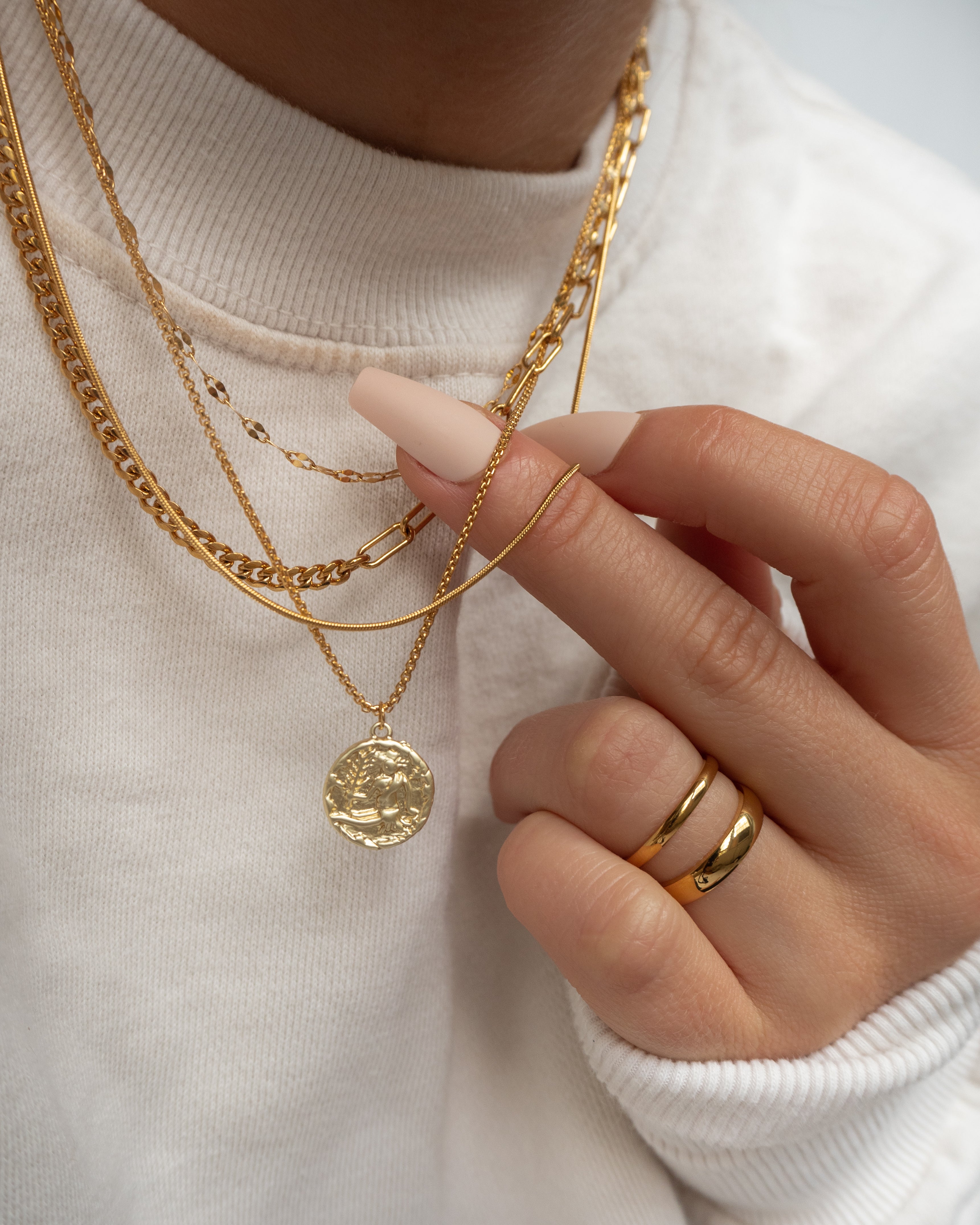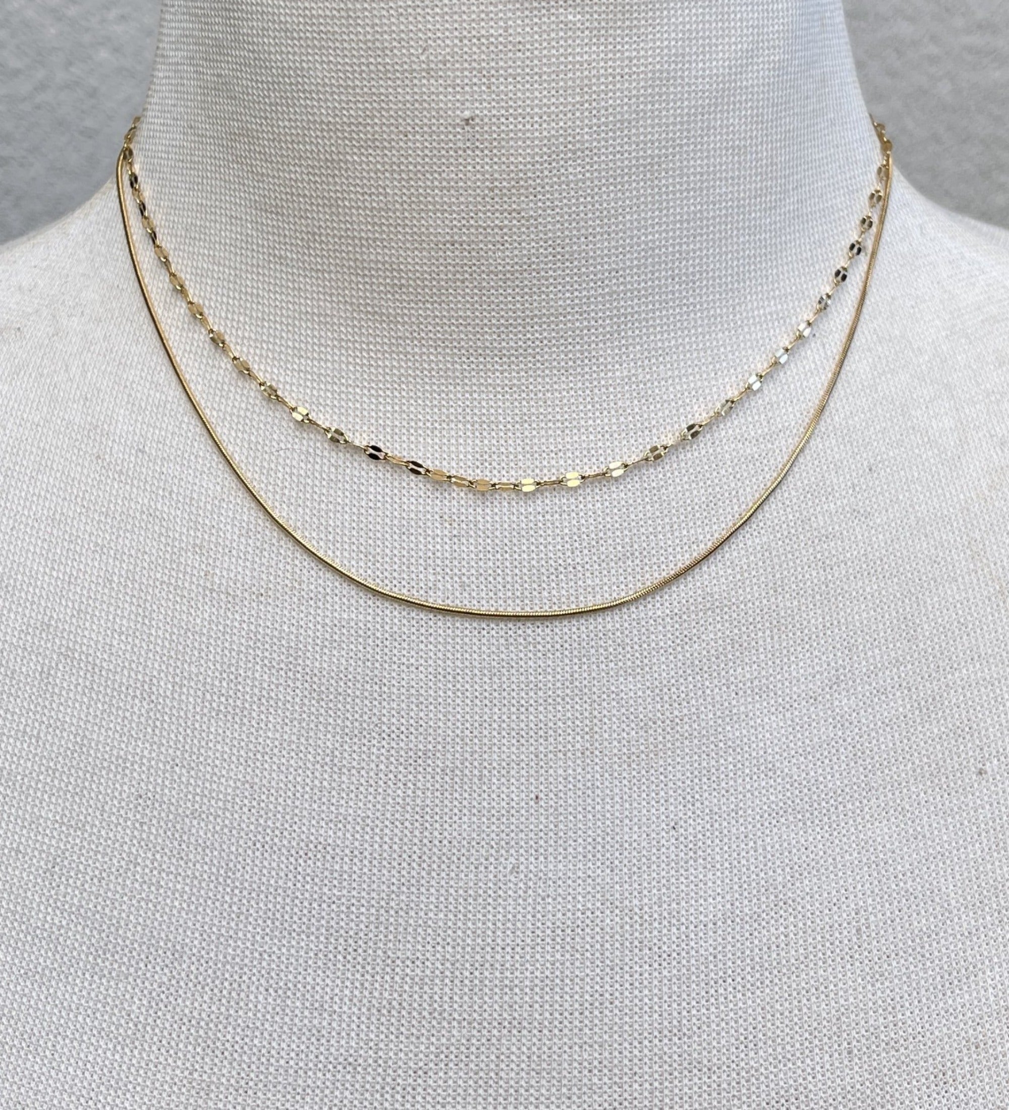 Double Layer Gold Plated Stainless SteelShimmer Chain and Snake Chain Necklace