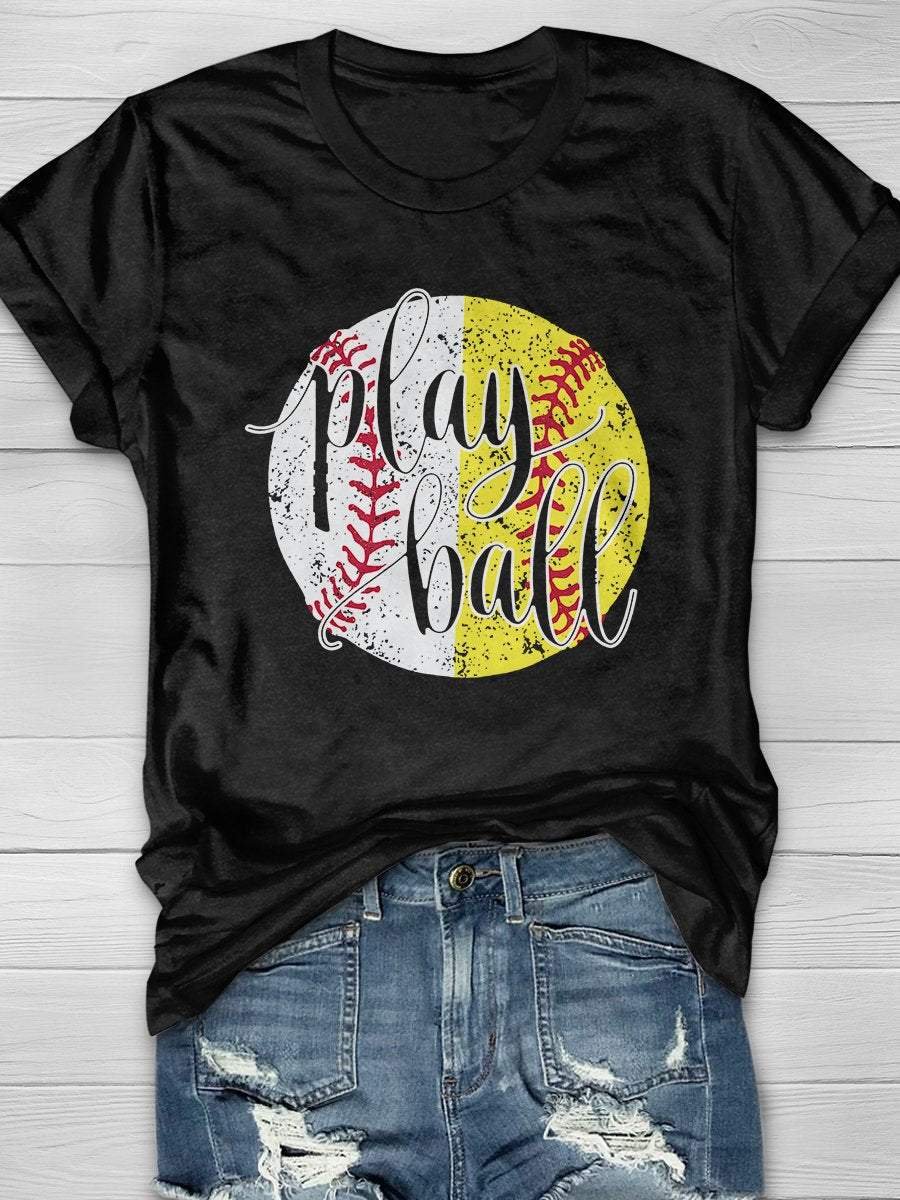 SKU: Play Ball Baseball Softball Print Short Sleeve T-shirt