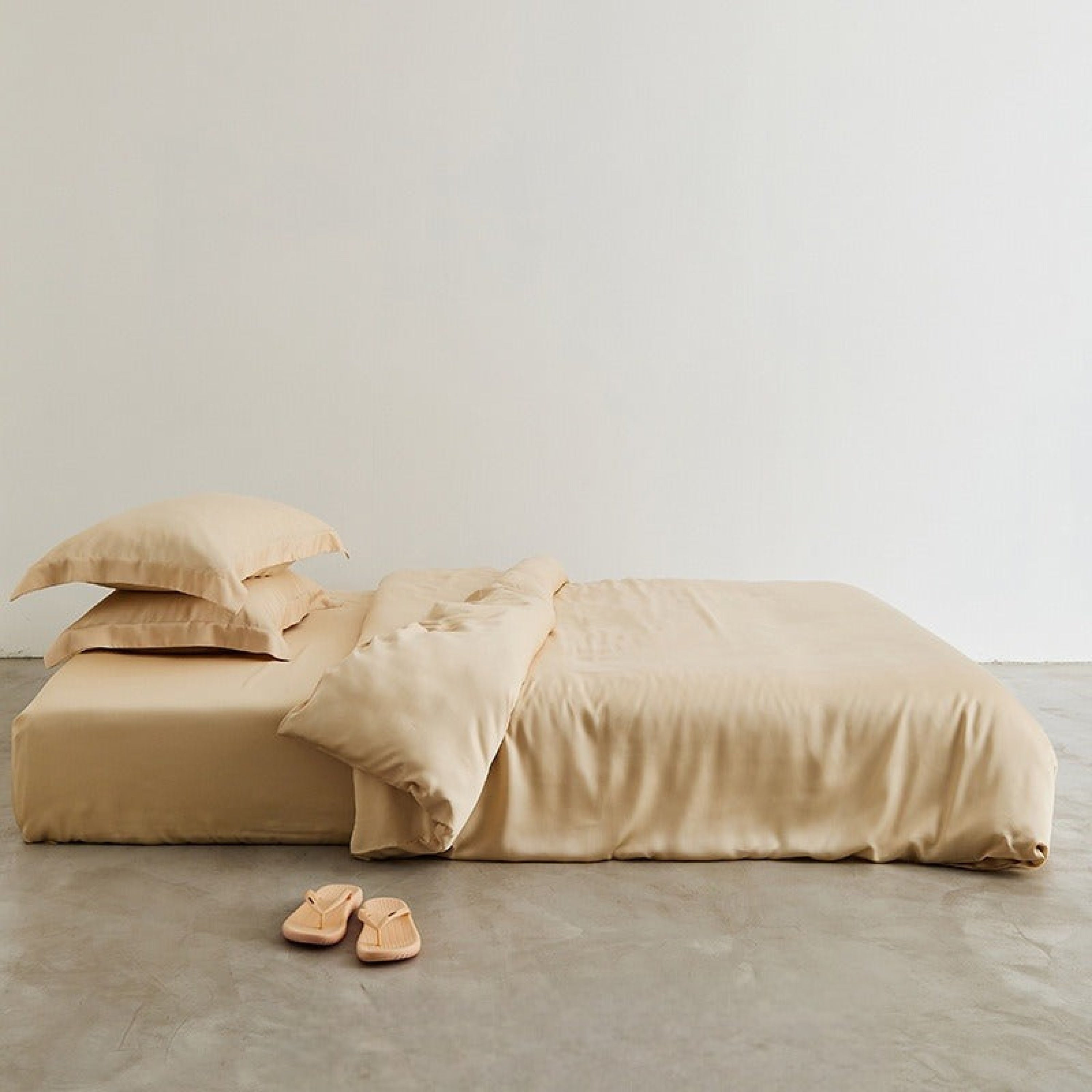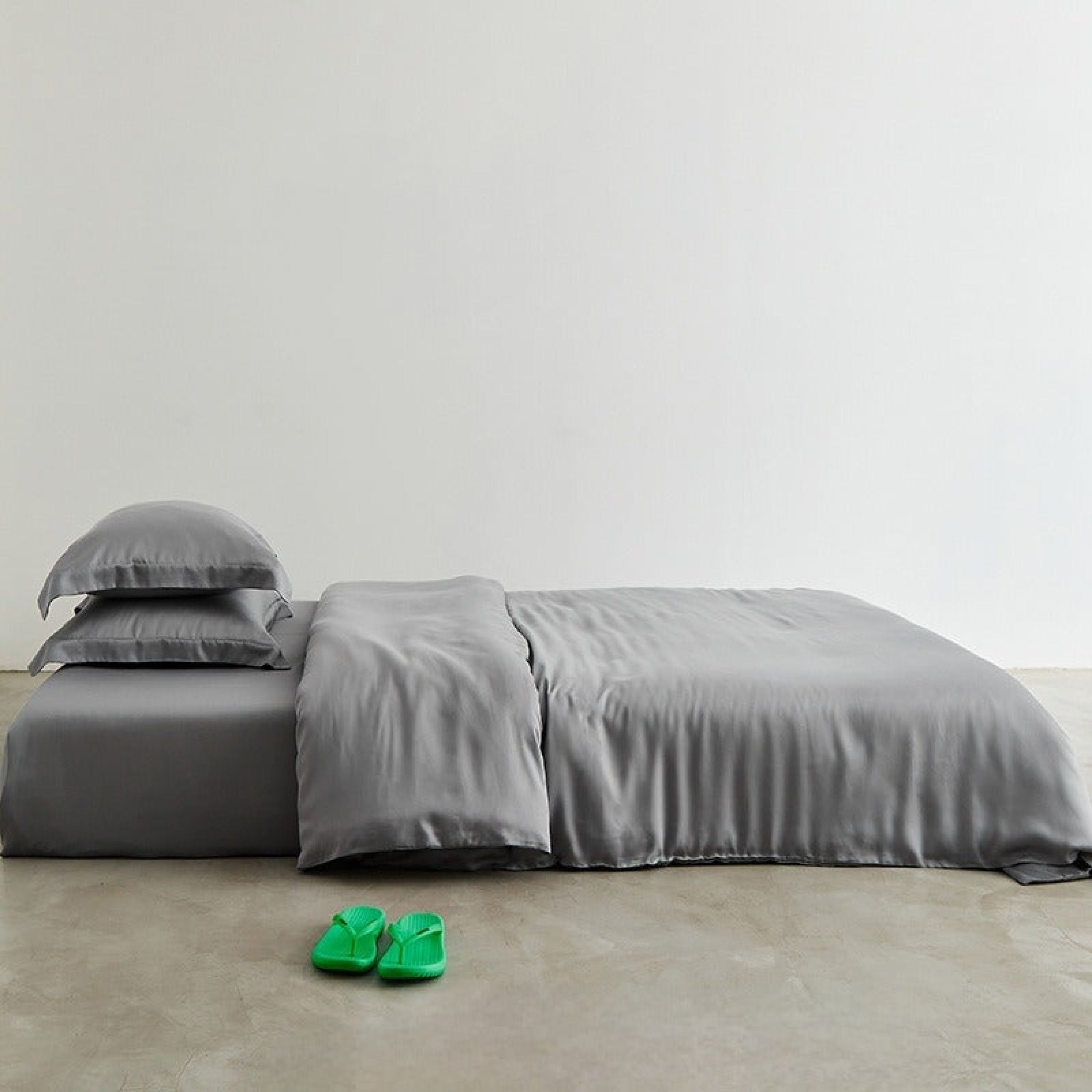 Introducing our Solid Tencel Bedding Set: where luxury meets sustainability effortlessly. Made from eco-friendly Tencel fabric. it offers a silk-like feel for a truly dreamy sleep. With its cooling effects. it's perfect for hot summer nights. Timeless colors add a touch of sophistication. making your bed a luxurious sanctuary. Experience casual elegance and eco-consciousness with our new Solid Tencel Collection.