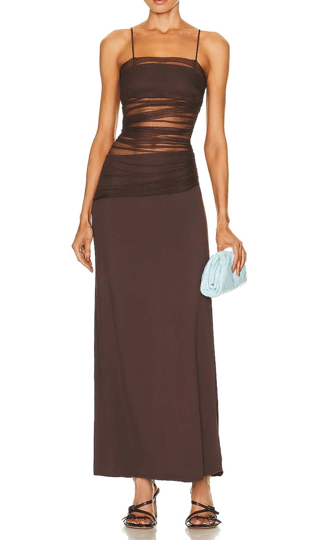 Show off your style in this eye-catching maxi dress. Crafted from polyester and mesh. the strappy brown design features an alluring silhouette that will look perfect on any figure. Perfect for summer days or evening events. this dress will make a statement with any look.