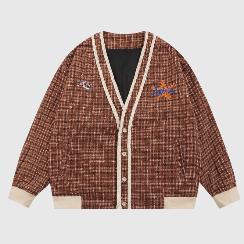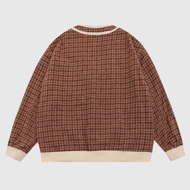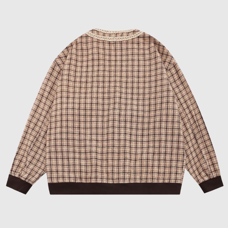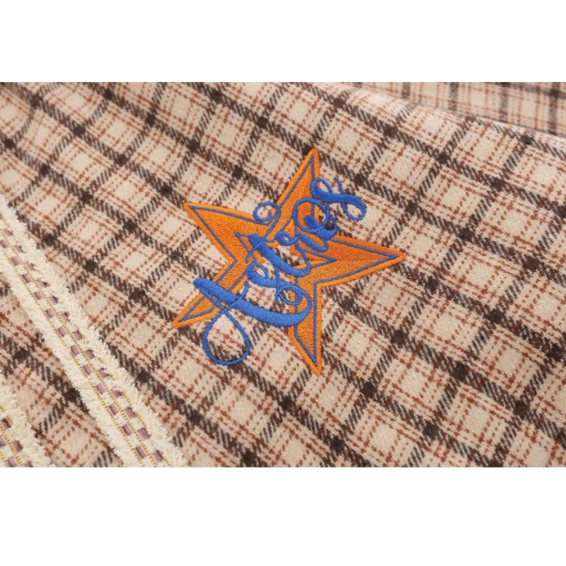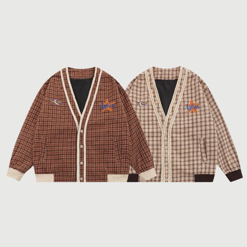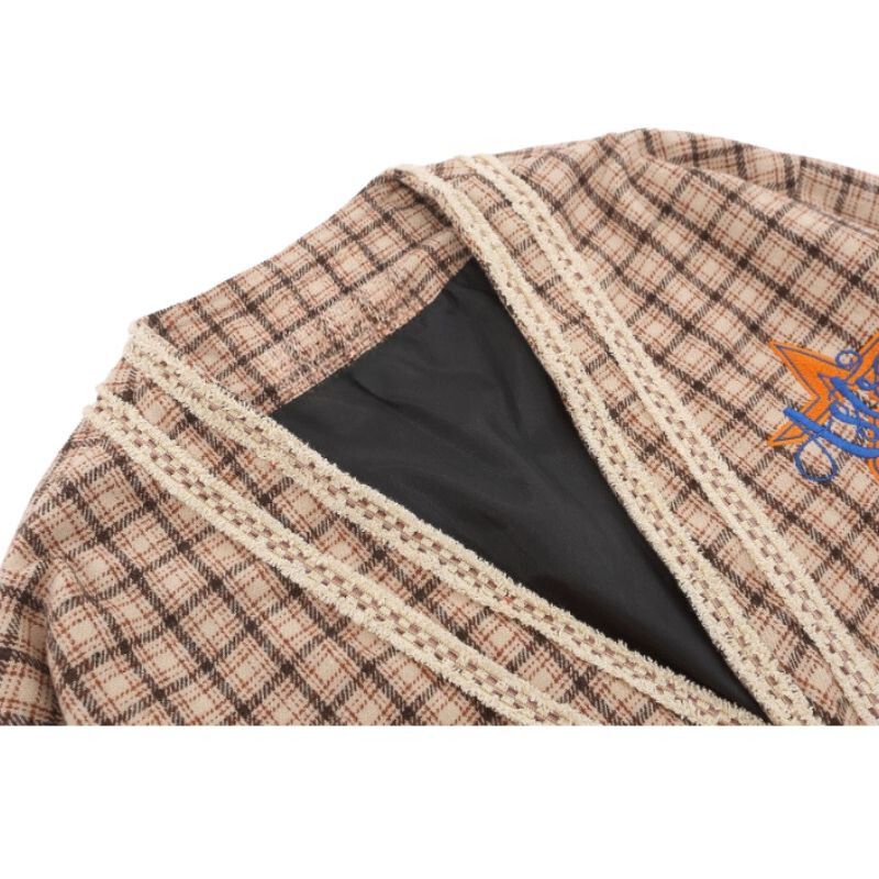 Features: Coats. lapel. long sleeve.plaid lace embroidery design. no stretchy. relaxed fit. unisex. soft and breathable. couple outfits.