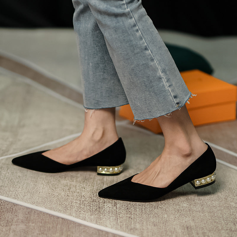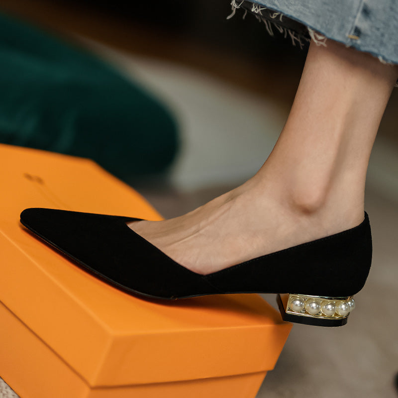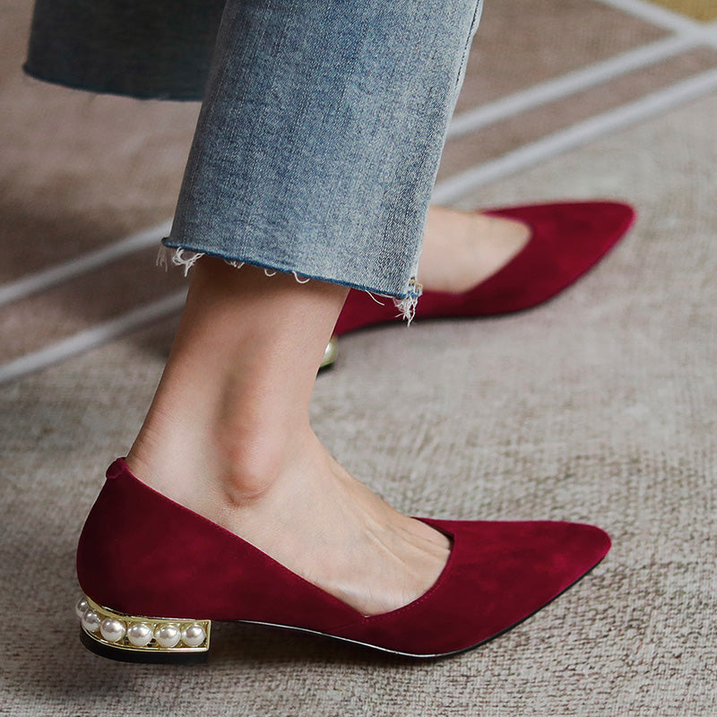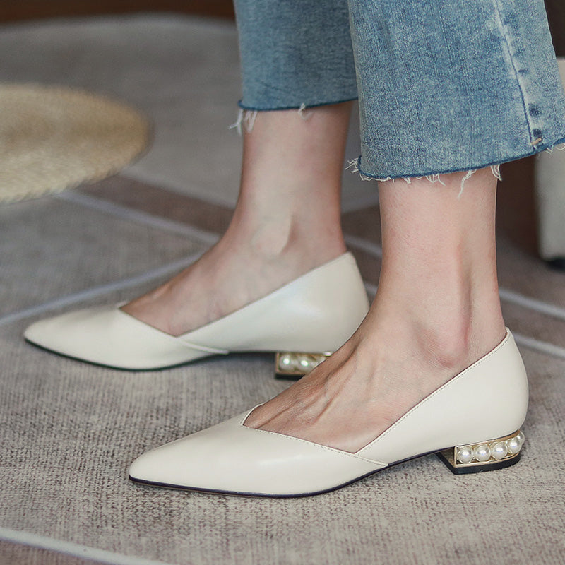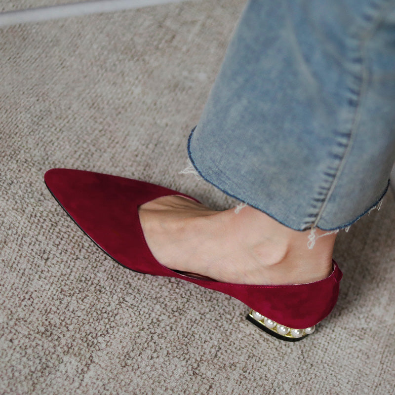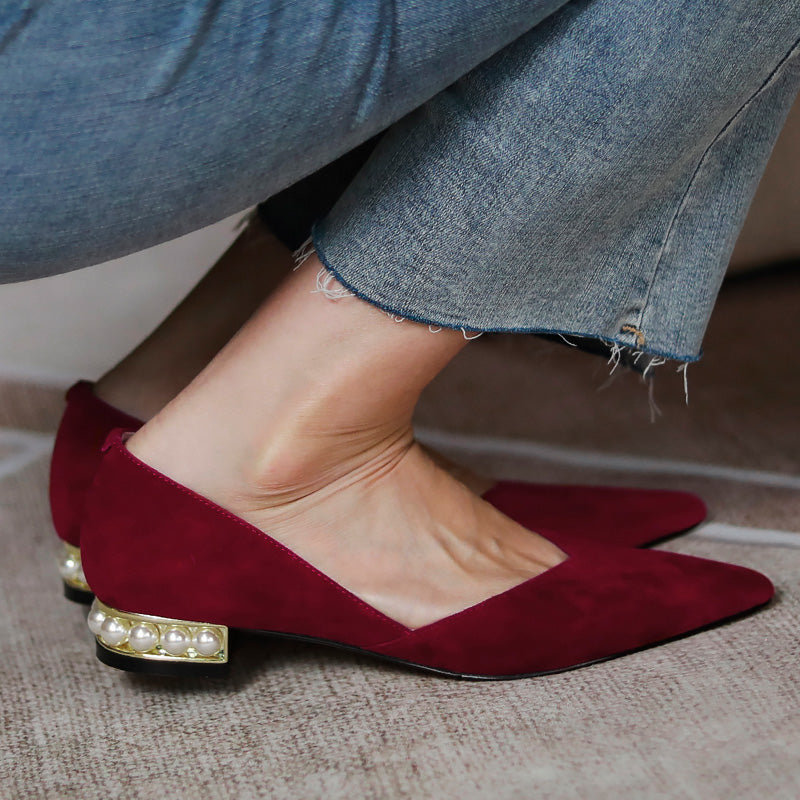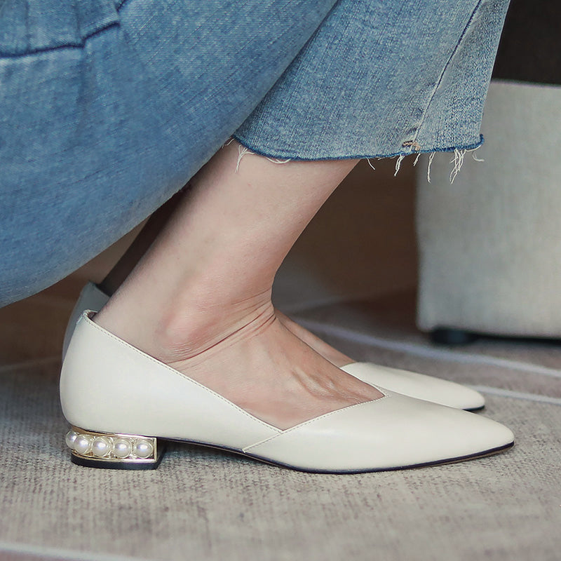 Decorated with pearls and designed with V cut feature. the Valentina flats are perfect for any day to look chic effortlessly.