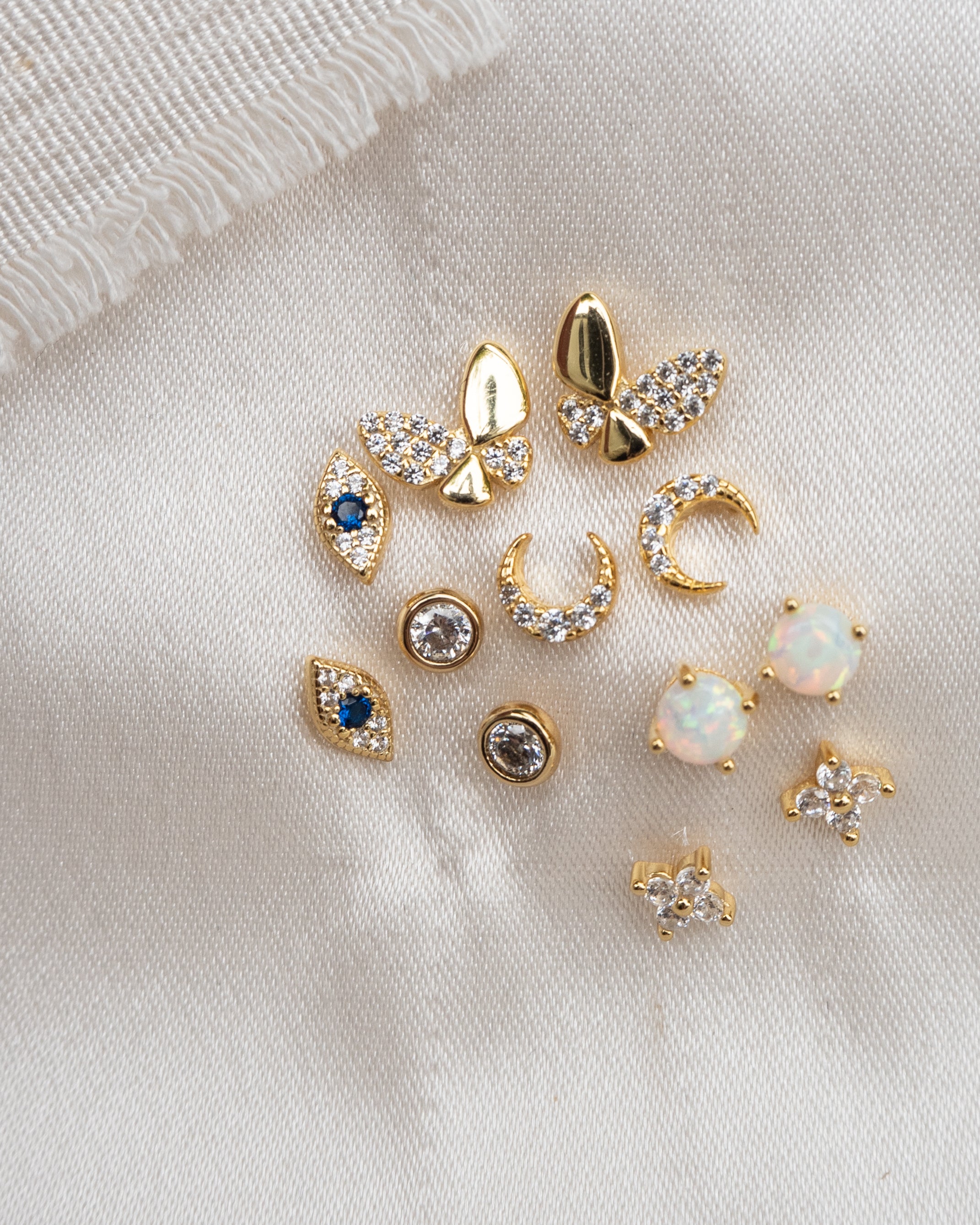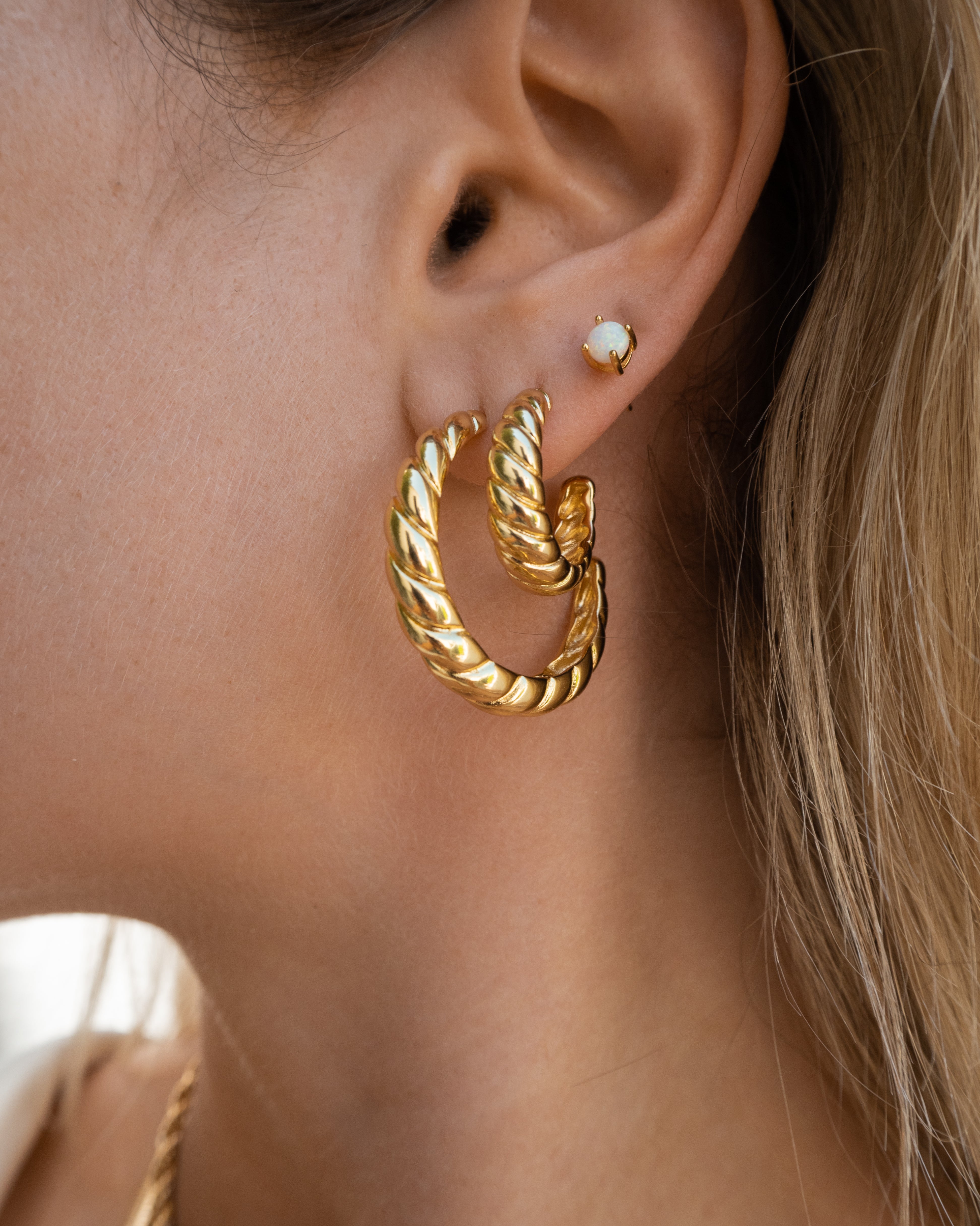 Gold Plated 925 Sterling Silver Stud Earrings withWhite Opal Gemstone