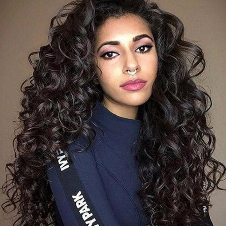 Natural Black Long Curly Hair Fluffy Afro Small Curly High Temperature Fiber Wigs