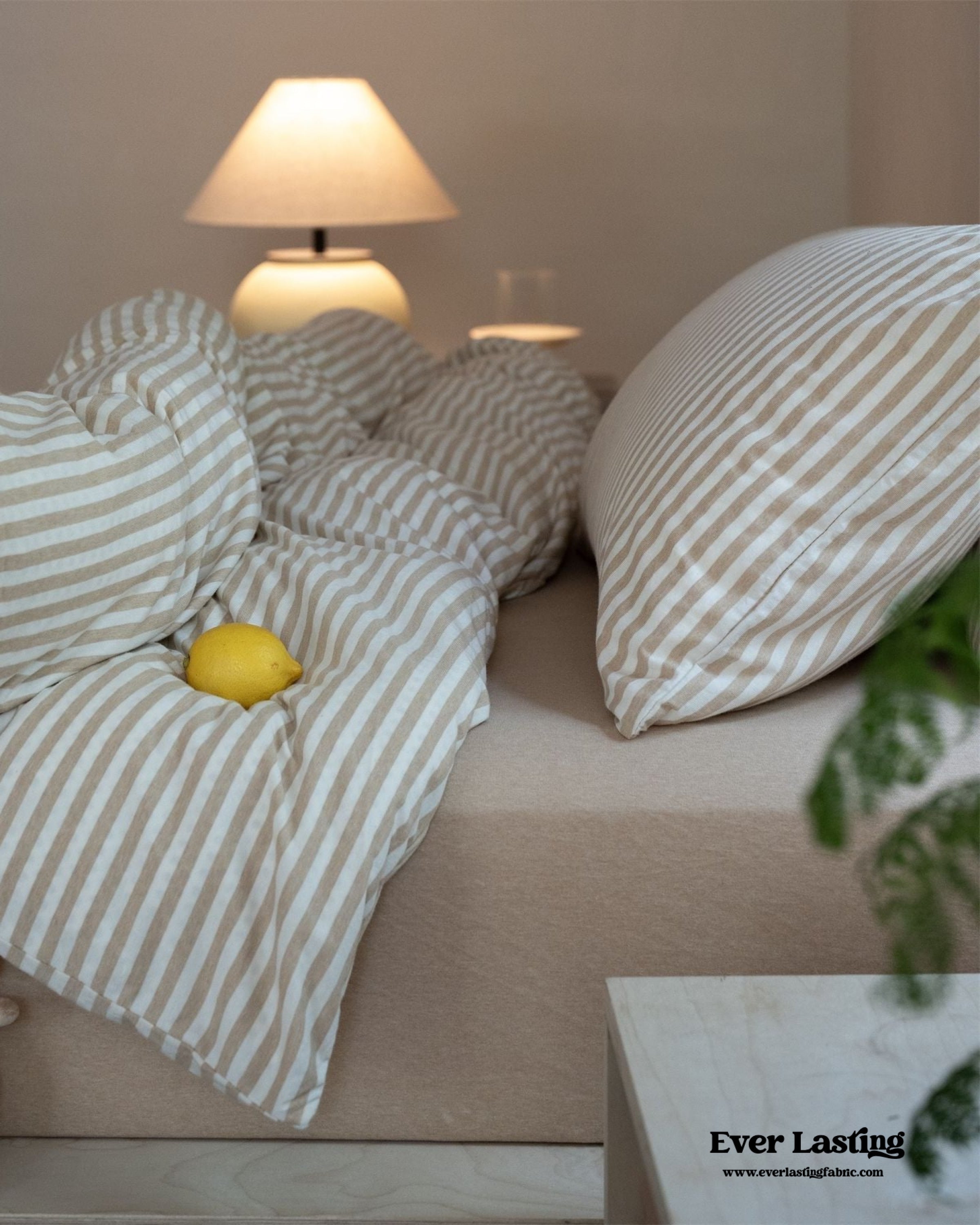 Refresh your bedroom with Magchic's Wren Fresh Striped Jersey Knit Bedding Set. designed to blend cozy comfort with modern style. Crafted from ultra-soft and breathable jersey knit fabric. this set offers a relaxed. lightweight feel perfect for restful nights. The fresh striped pattern adds a clean. contemporary aesthetic. making it a versatile addition to your bedroom decor. Each duvet cover features corner ties and a hidden zipper to securely hold your duvet insert. promising enduring quality tailored just for you. Perfect for those who love a cozy yet fresh ambiance. this bedding set elevates your space with timeless charm and comfort.